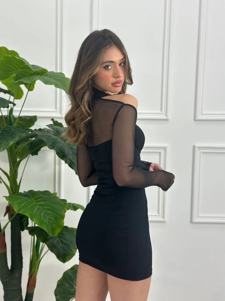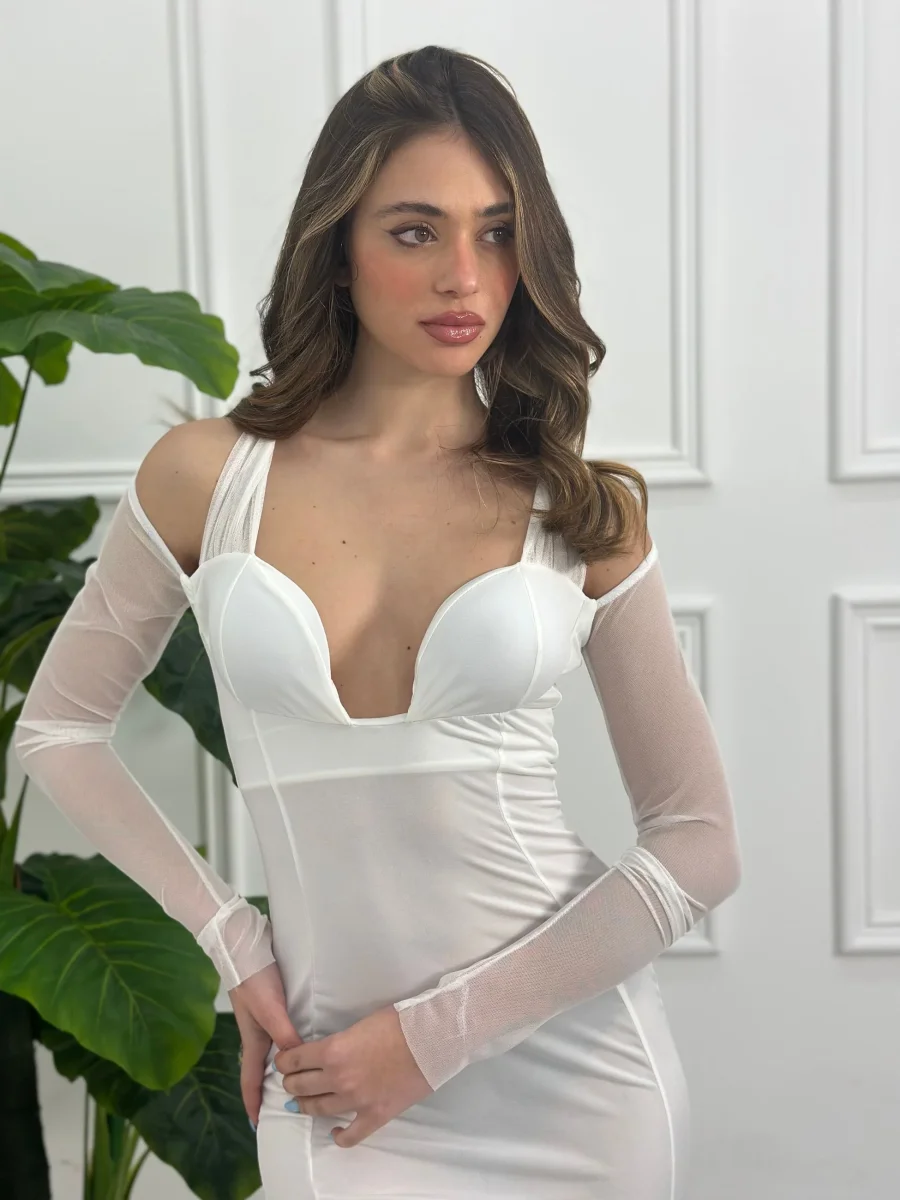 Abito a tubino con coppe e maniche in tulle
