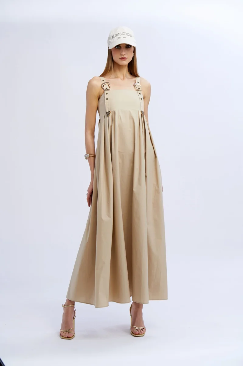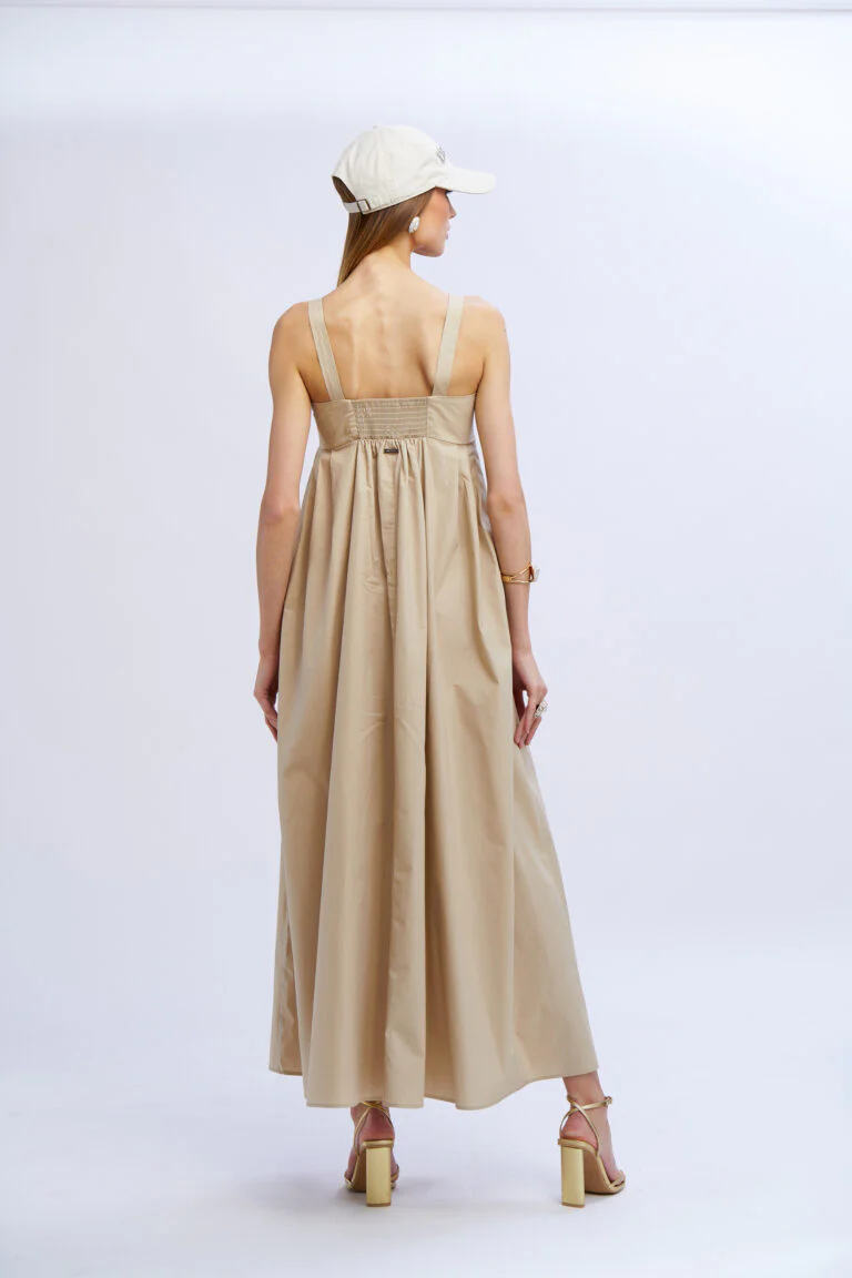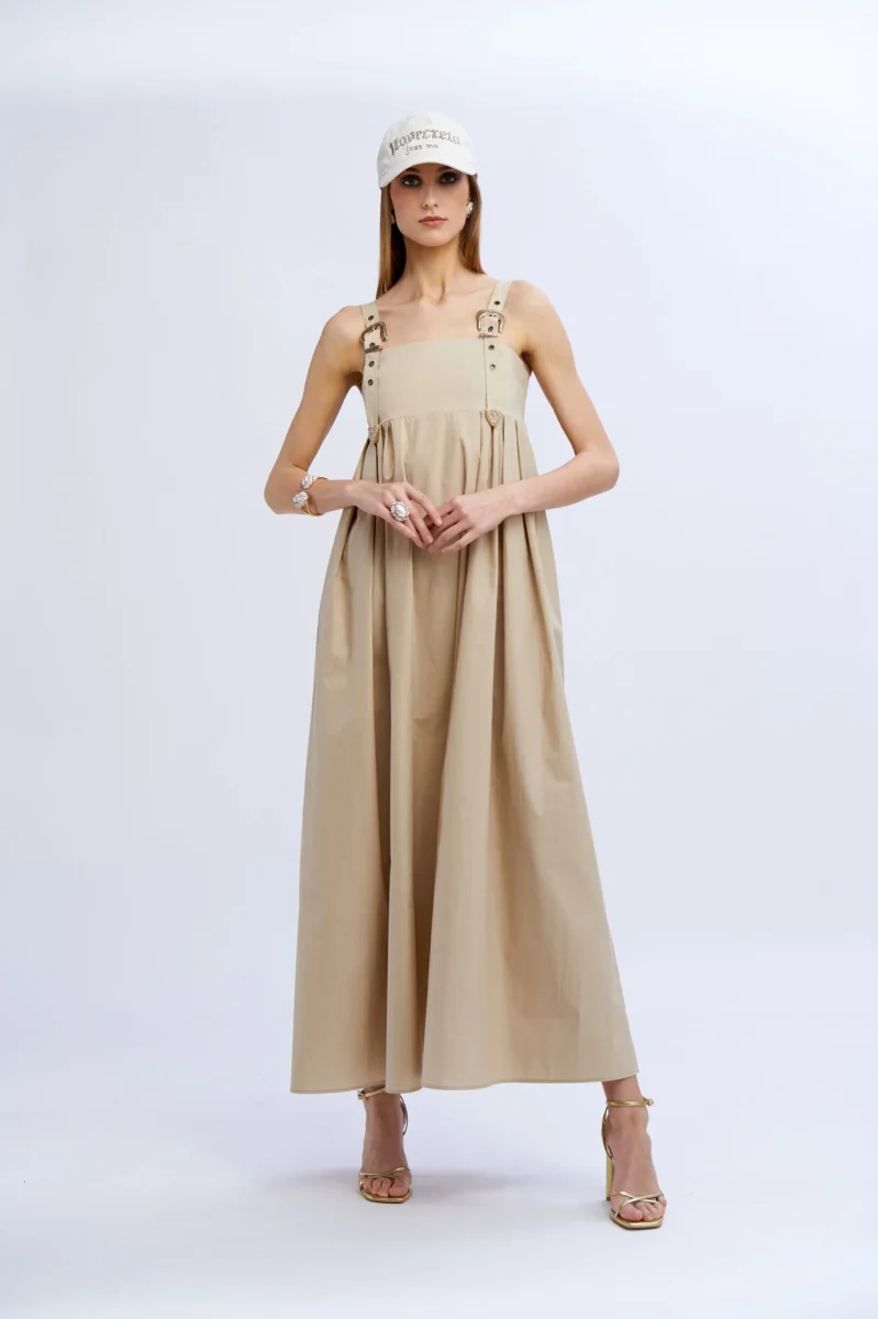 Bellissimo abito lungo in cotone, color nocciola di No Secrets con fibbie a chiusura delle spalline. Abito ideale per le tue passeggiate estive o per un aperitivo in spiaggia.