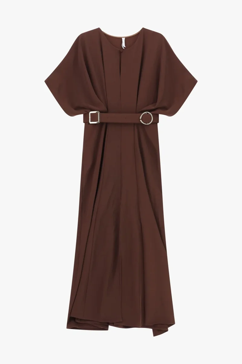 Un abito di lunghezza media che unisce raffinatezza e funzionalitร . Caratterizzato da una scollatura rotonda, maniche corte fluide e una cintura in vita che esalta la silhouette, รจ l’ideale per occasioni eleganti. La linea pulita e il colore uniforme creano un look impeccabile, mentre il design senza chiusura garantisce comfort senza rinunciare allo stile.