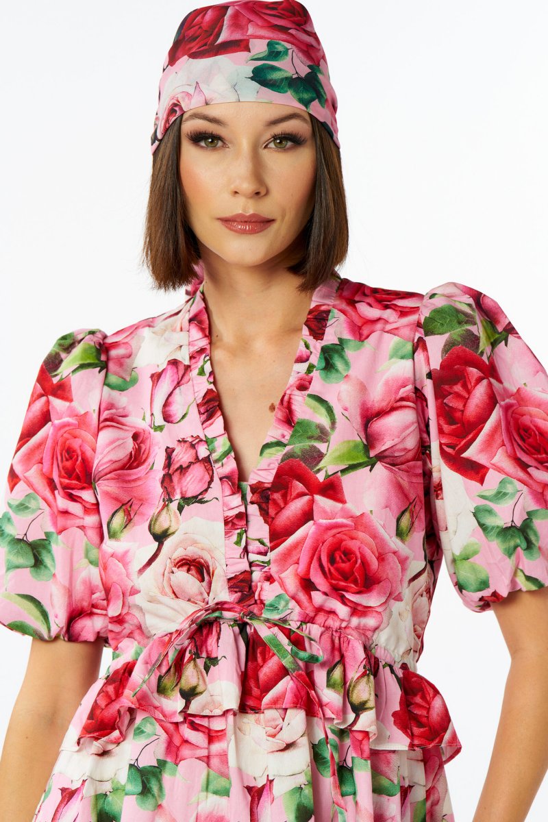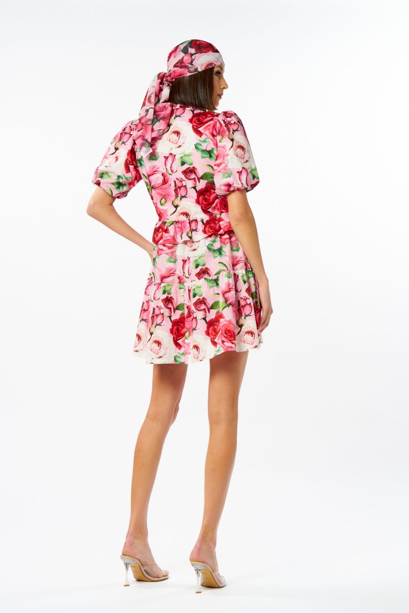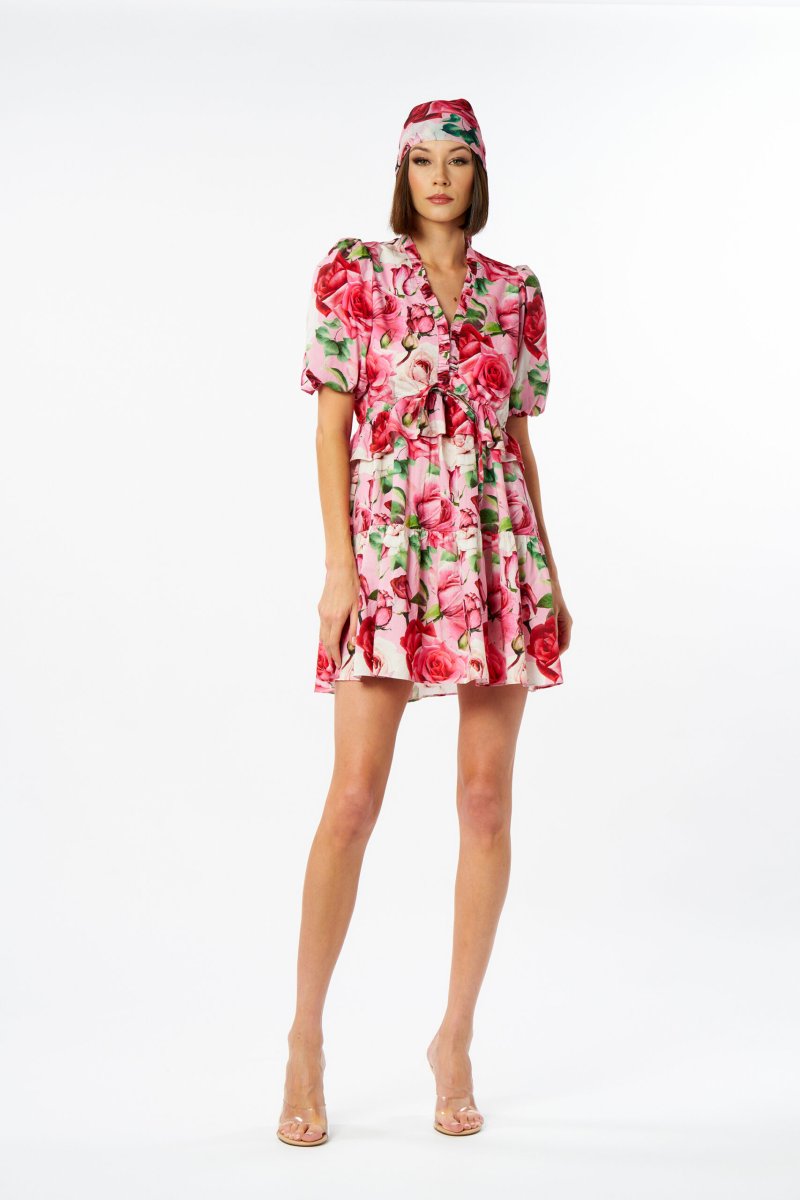 Bellissimo abito corto fantasie rose in cotone di No Secrets. Disponibile dalla taglia 38 alla 42.