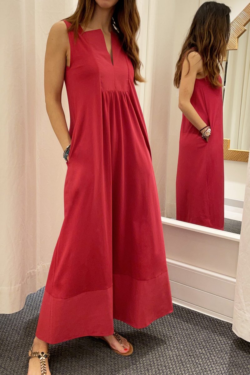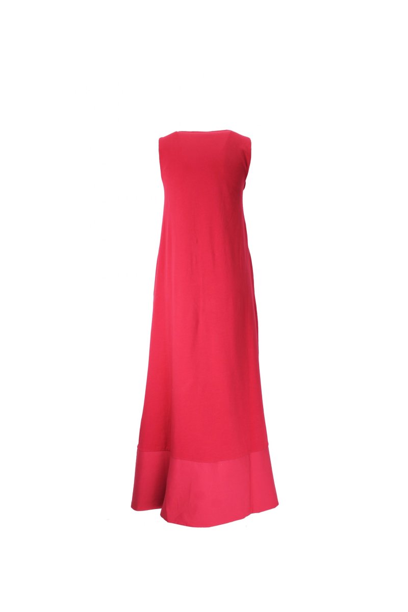 Abito lungo guru in jersey con inserti in cotone sullo scollo e sul fondo