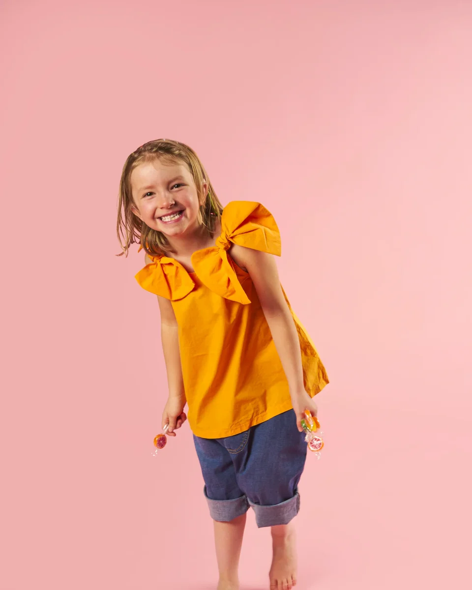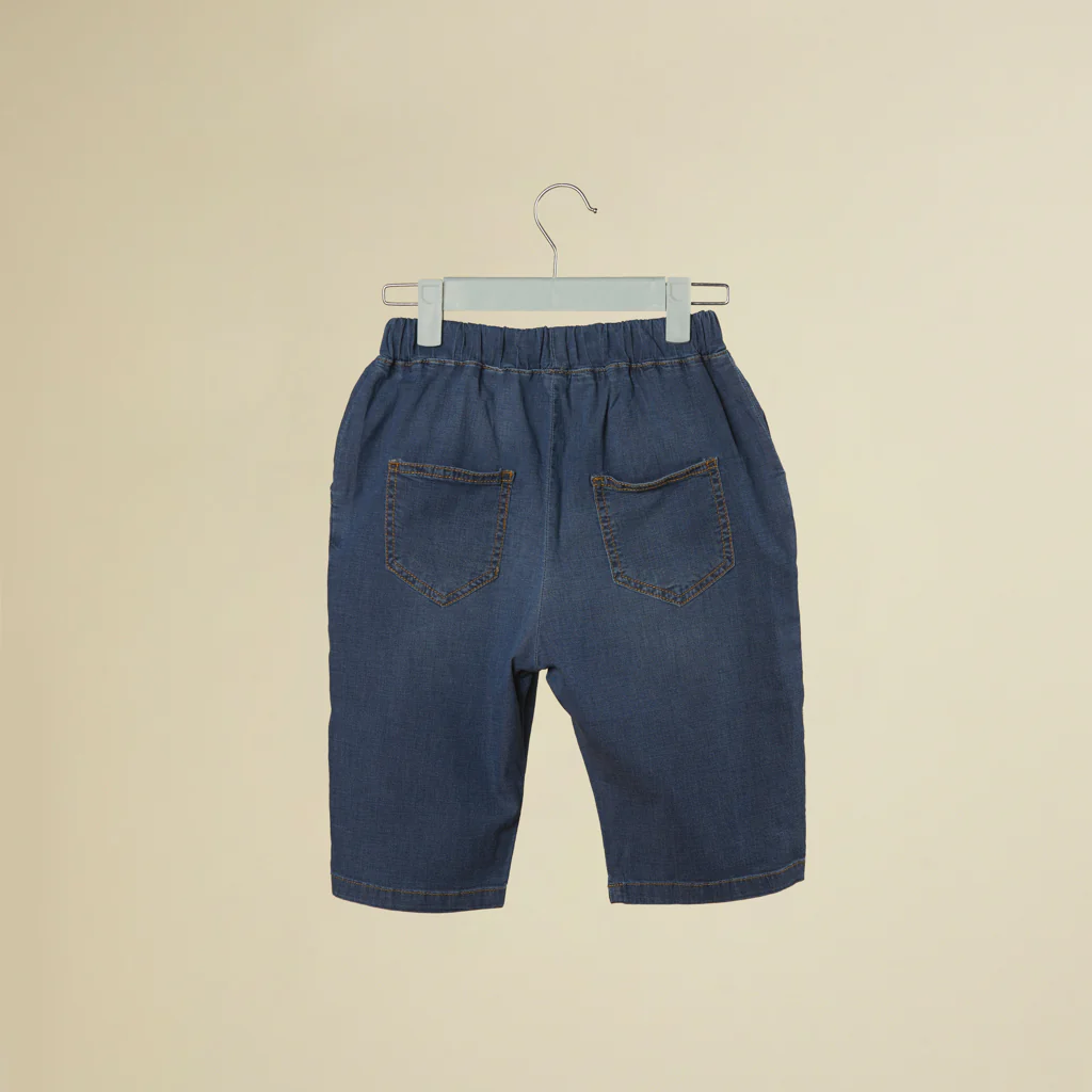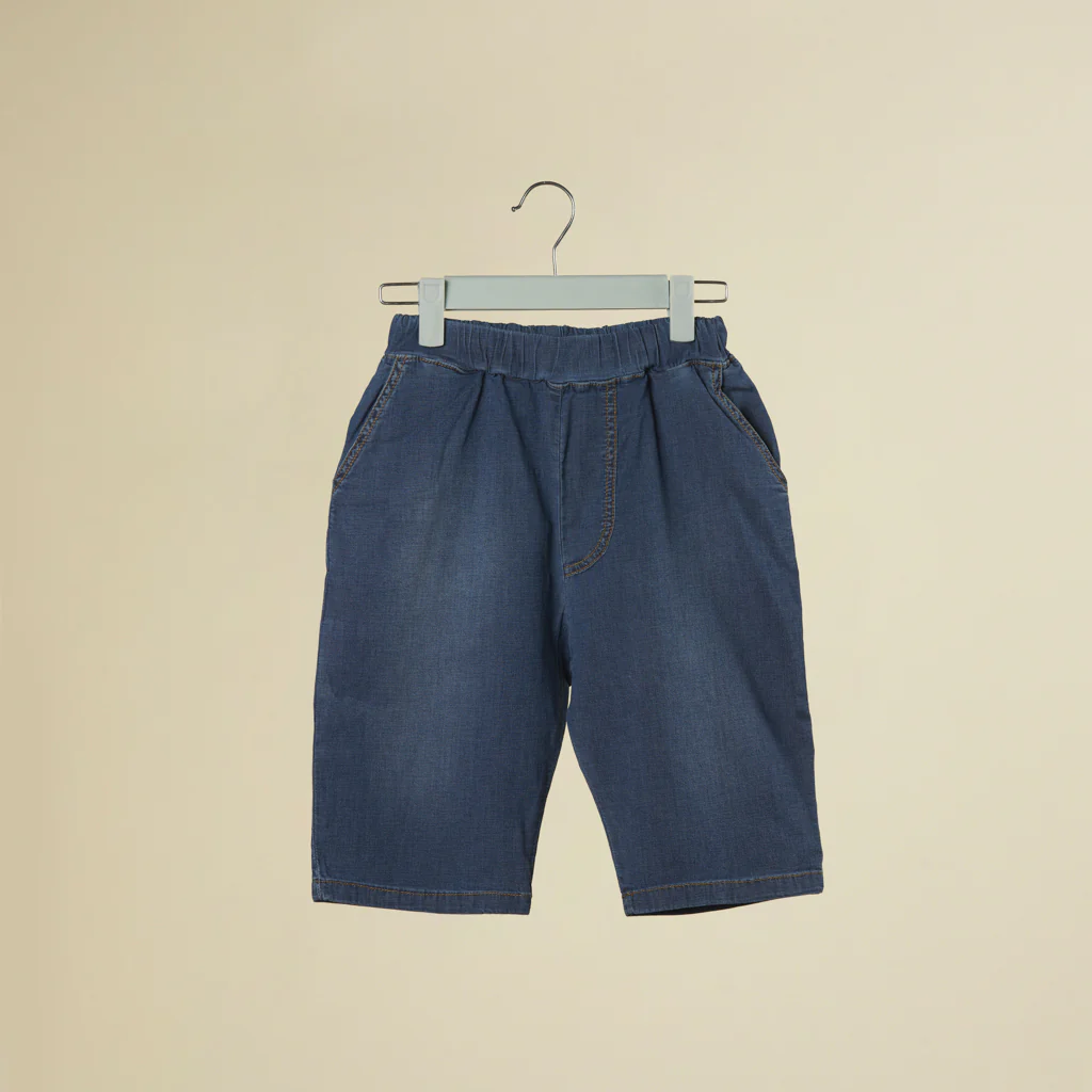 Bermuda baggy in denim, con elastico in vita e tasche.