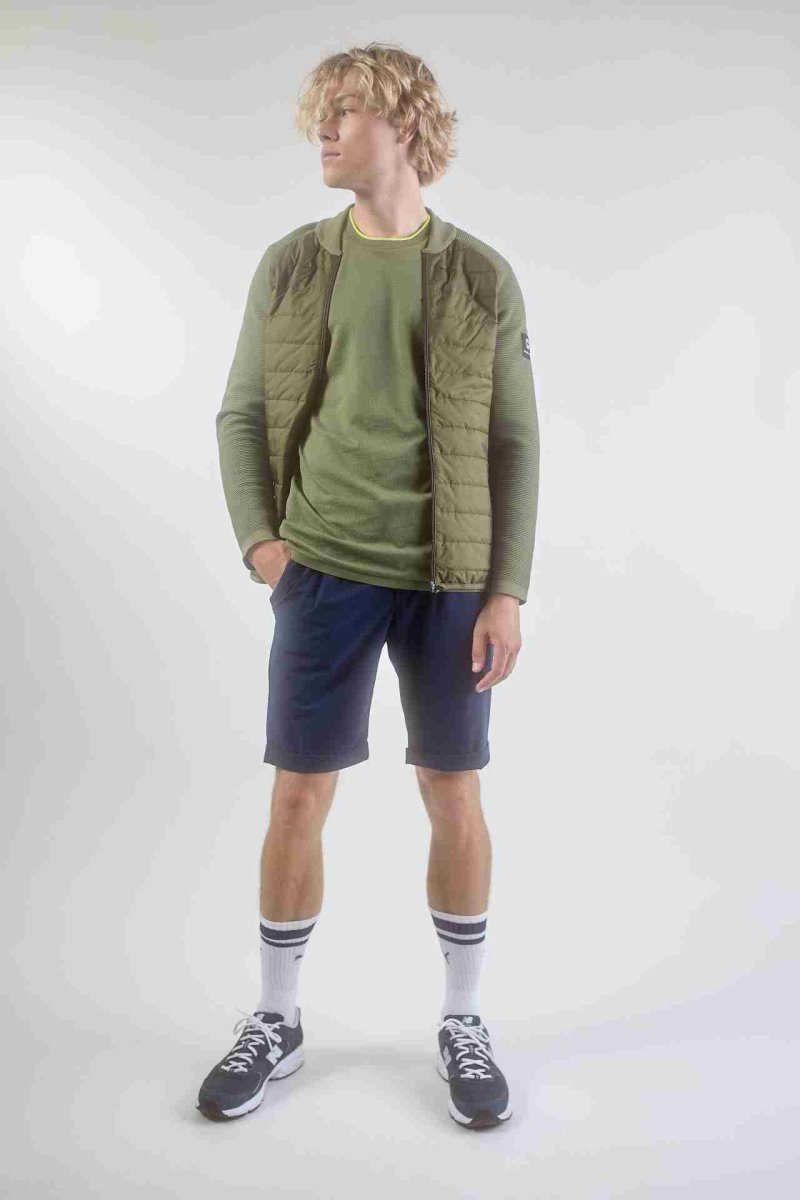 Raffinati bermuda con tasche e pratica coulisse realizzati in tessuto tecnico. La loro particolare composizione รจ in grado di fornire una barriera dai raggi UV, rendendoli un capo versatile sia per il tempo libero che per lo sport allโaria aperta. Leggeri, confortevoli, anallergici e antibatterici.
