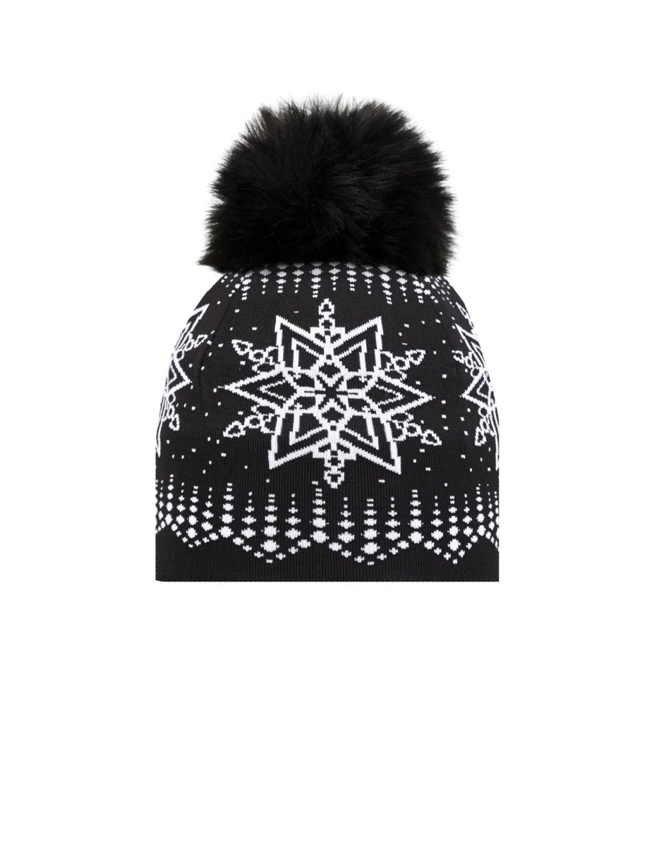 Berrettoย termoregolante con pompom in pelliccia sintetica e con raffinato jacquard. Accessorio realizzato nel tessuto tecnico DHtech 400, รจ in grado di allontanare l’umiditร durante le avventure outdoor.