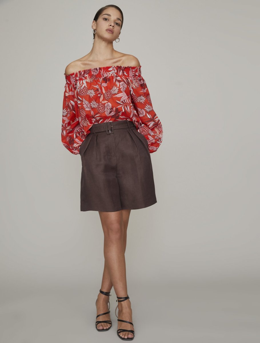 Blusa marca IBlues, scollo Off Shoulder, in cotone stampato dalla linea over, con ampie maniche a bracciale. Per un effetto glam wow.