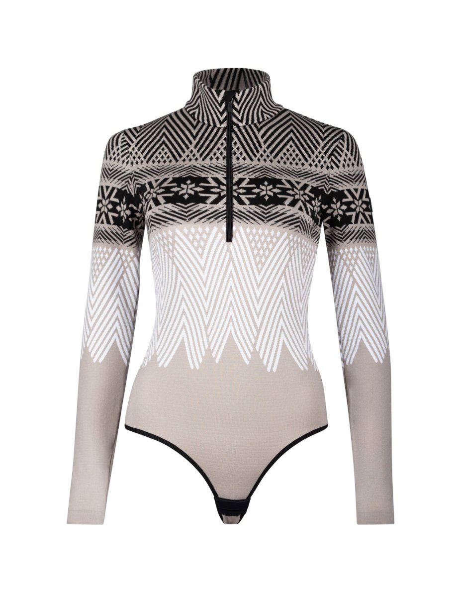 Il nuovo body con zip corta si abbina perfettamente ai pantaloni multifunzionali Alpensia per un look alpino sorprendente. Il tessuto DHtech 400 รจ caldo, traspirante, termoregolante ma morbido al tatto, e i bottoni automatici posizionati in modo ottimale permettono di indossarlo e sfilarlo con facilitร .