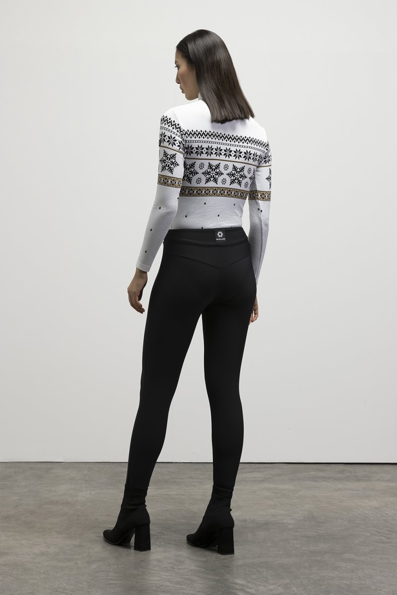 Il nuovo modello di body con zip corta realizzato nel tessuto tecnico DHtech 400, รจ perfetto per essere indossato a contatto con la pelle. Offre la massima libertร di movimento assicurando traspirabilitร , comfort e calore. I bottoni automatici posizionati in modo ottimale facilitano l’inserimento e la rimozione. Lo jacquard norvegese rende questo capo raffinato e glamour, ideale da indossare in cittร o durante lo sport. Il tessuto รจ caldo, traspirante, termoregolante oltre che morbido al tatto.