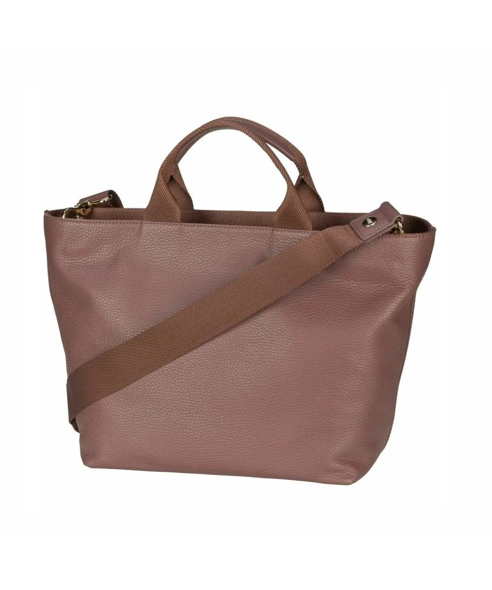 Borsa in pelle a mano con due manici e tracolla con tasca privata interna.