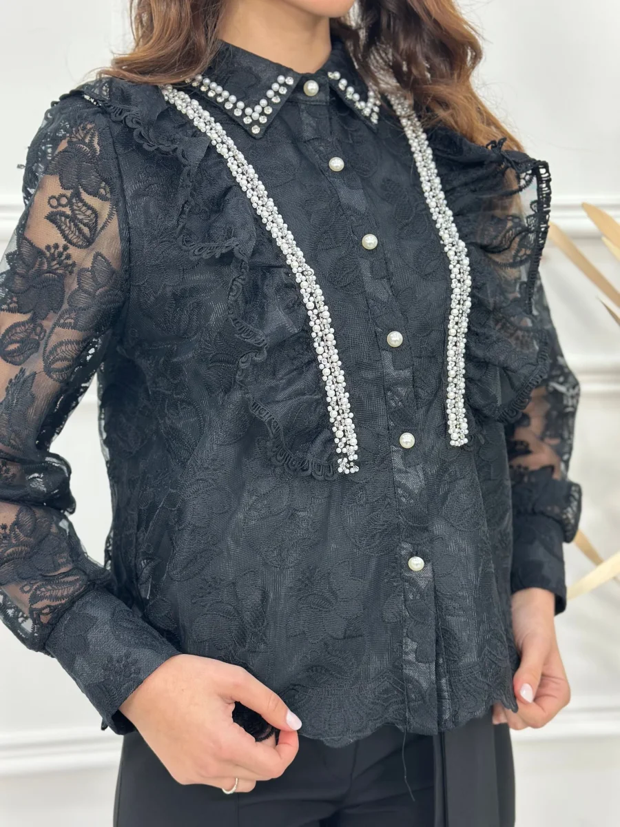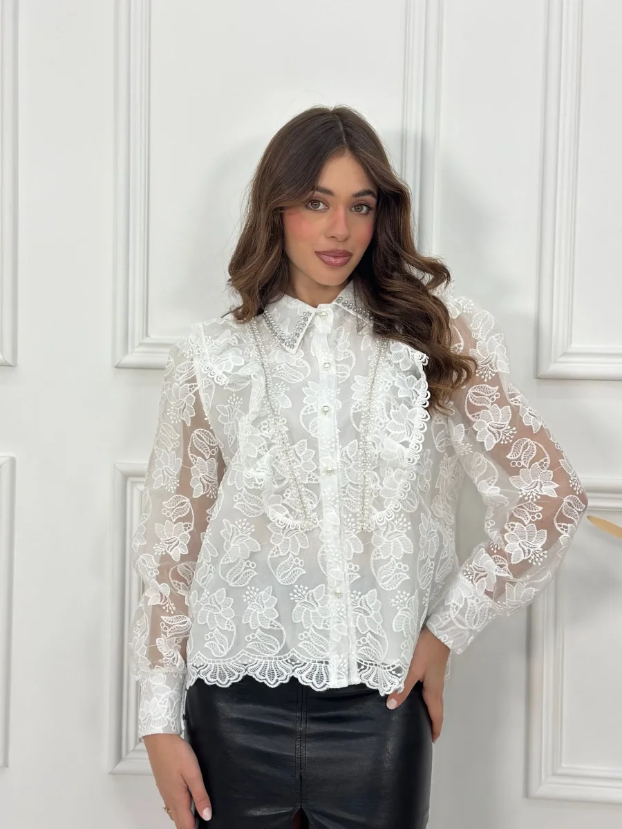 Camicia con perle e swarovski e rouches