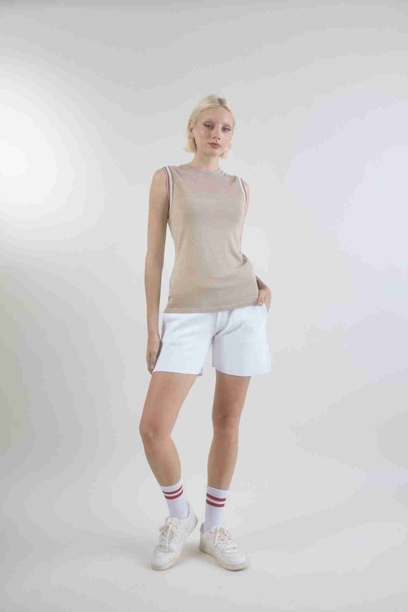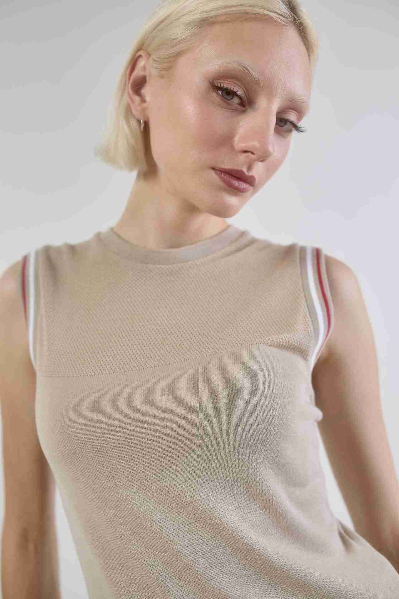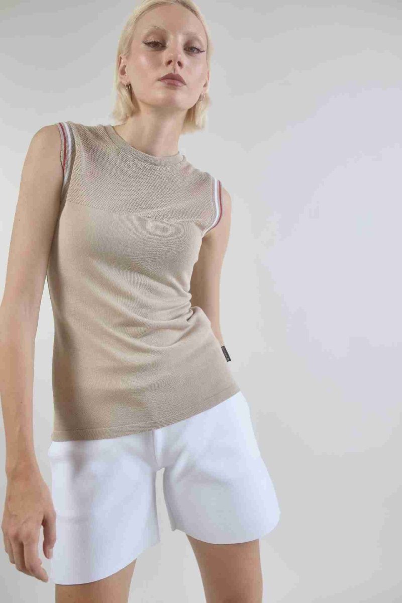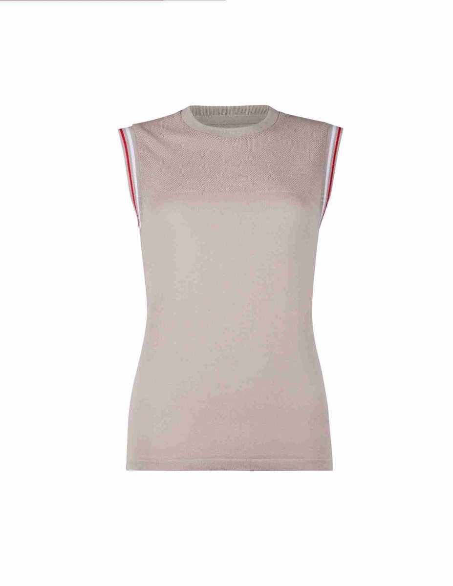 Canotta tecnica realizzata in 100% viscosa con dettaglio di rete sul dรฉcolletรฉ. Leggera, fresca e traspirante, รจ perfetta per lo sport e per il tempo libero. Impreziosita da raffinati dettagli in contrasto sulle maniche. Confortevole, easy care.