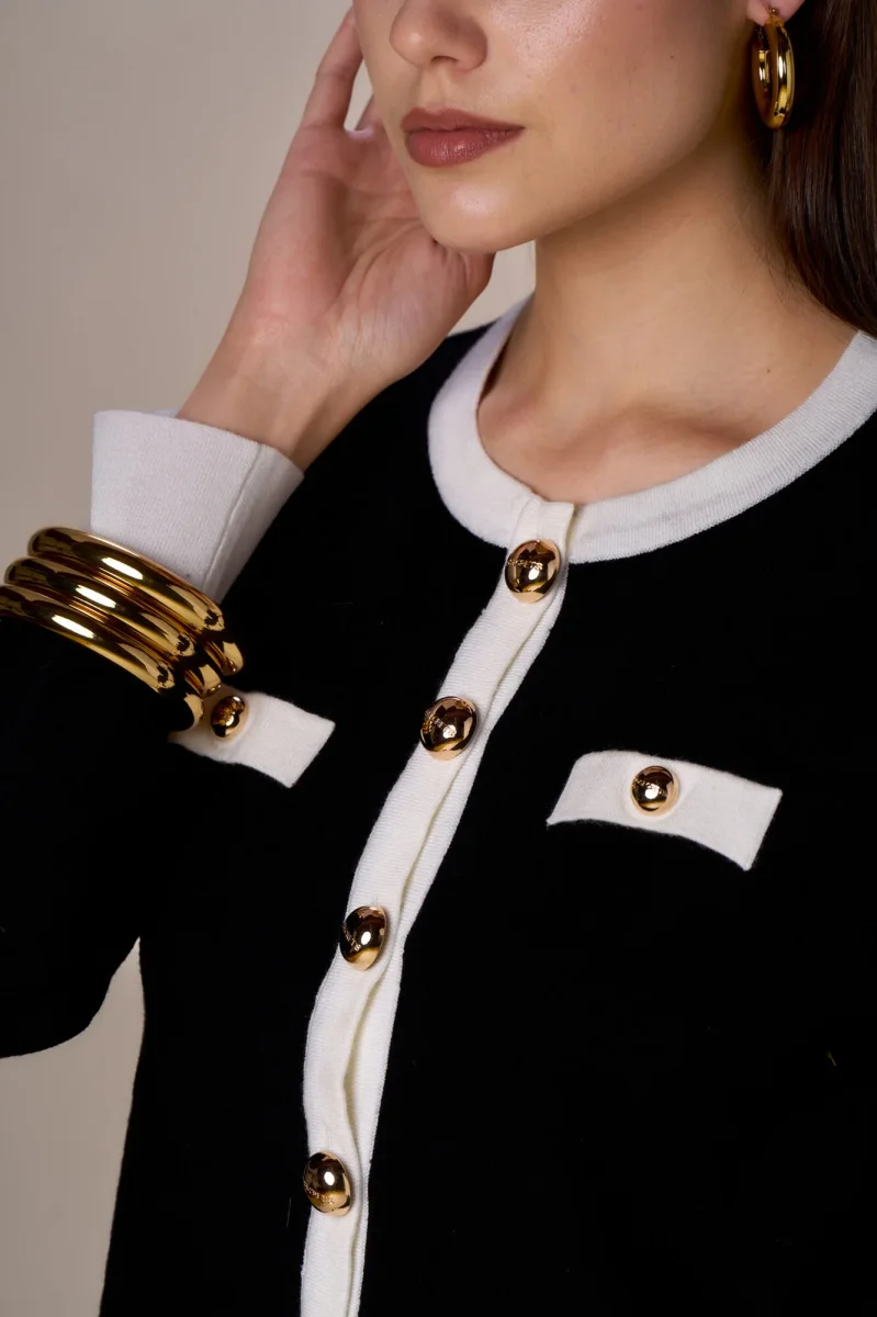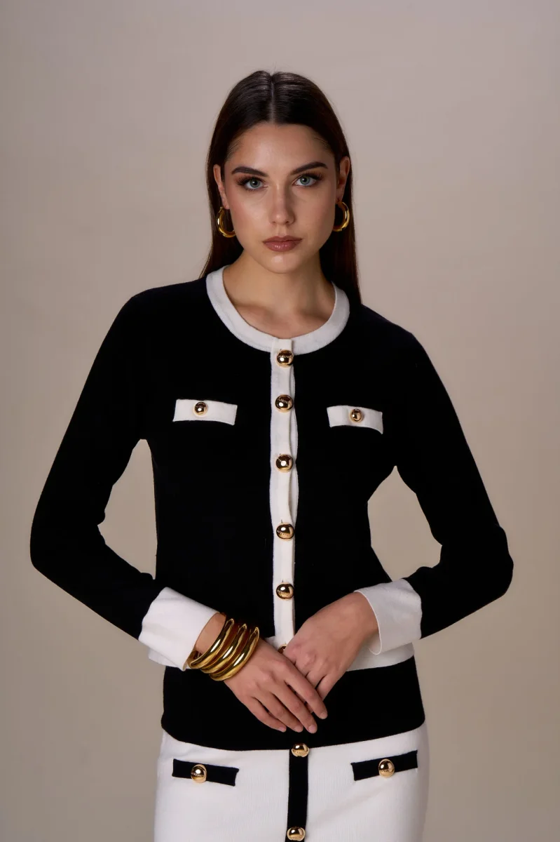 Cardigan nero con profili bianchi e bottoni oro No Secrets.