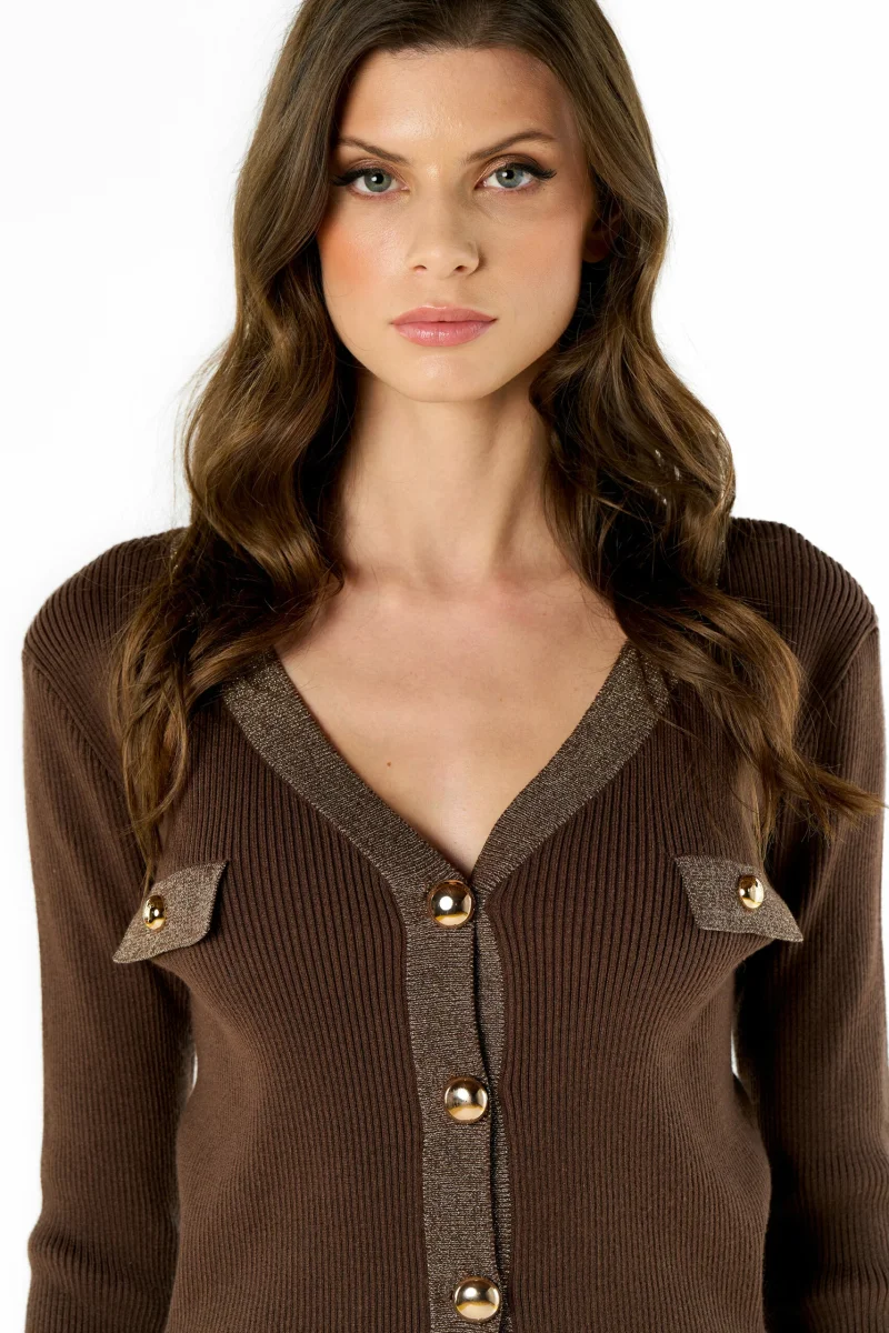 Cardigan No Secrets manica lunga con scollo a V e bottoni color oro.