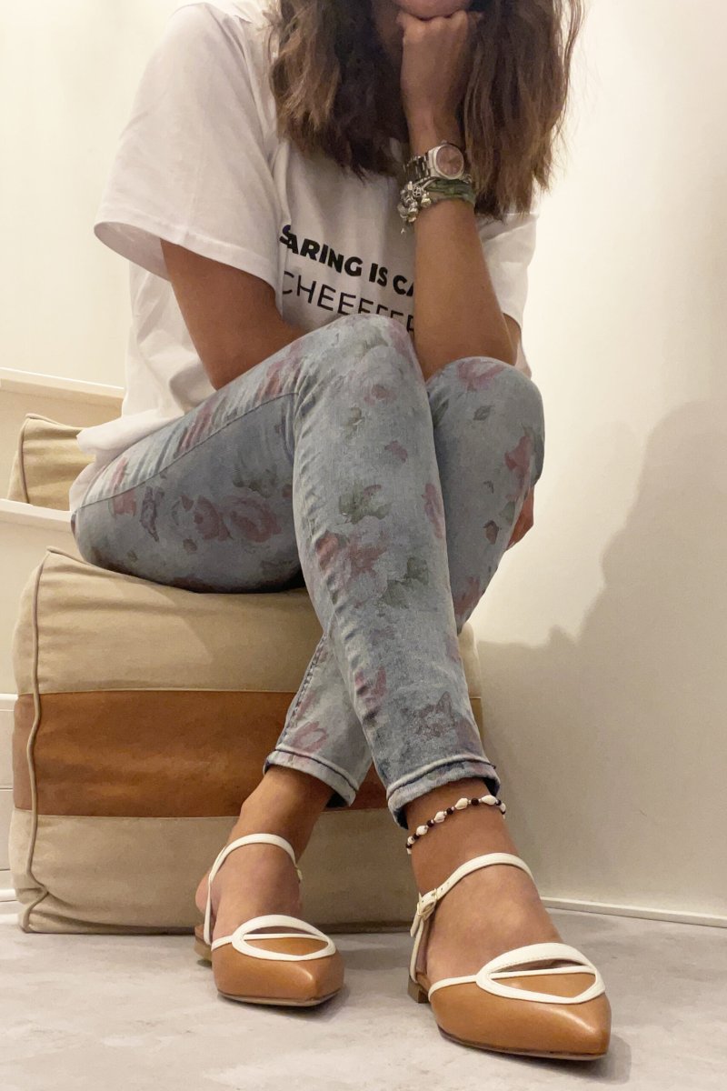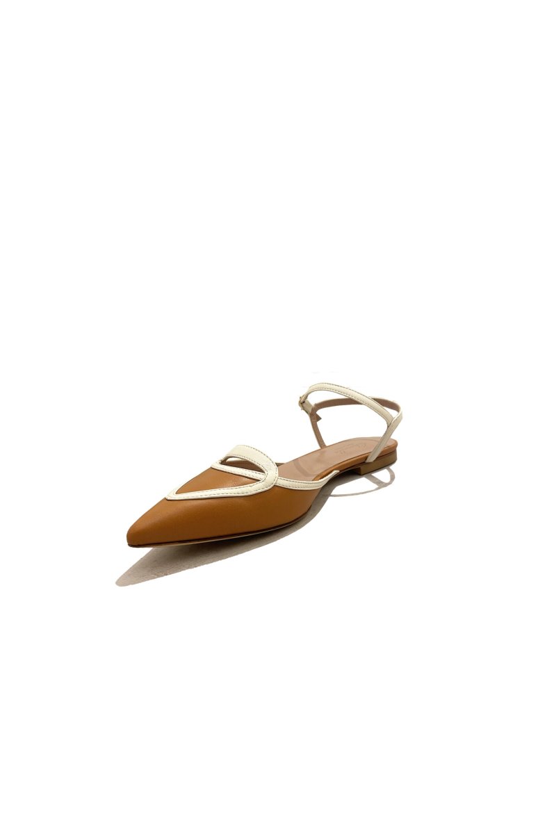 Ballerina a punta in nappa bicolor aperta sul tallone Fatta a mano. 100% Made in Italy