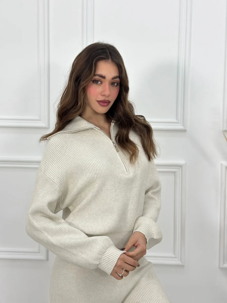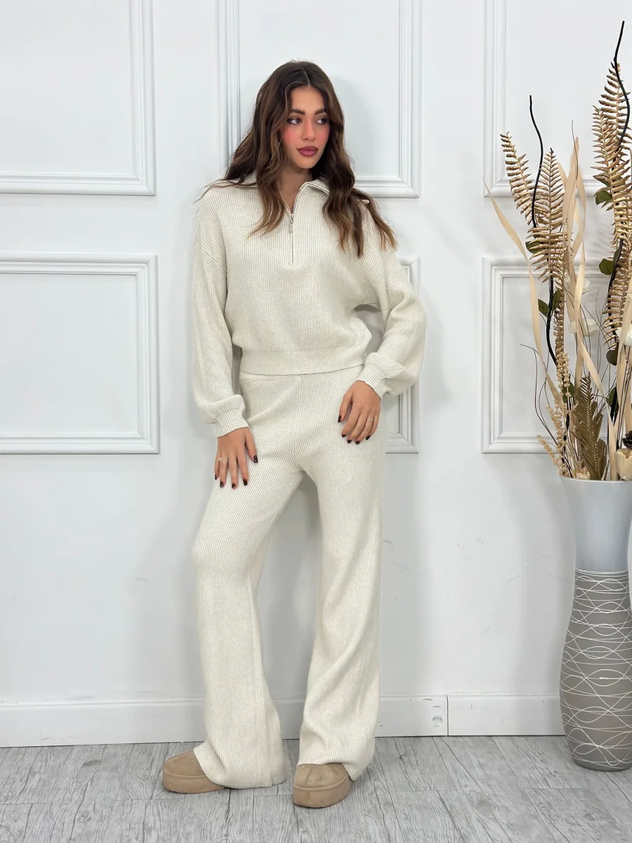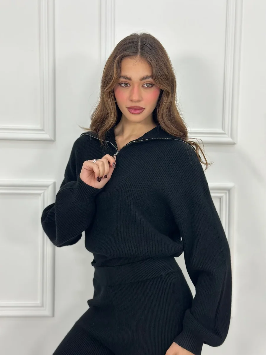 Coordinato composto da maglia crop con zip e pantalone con elastico in vita
