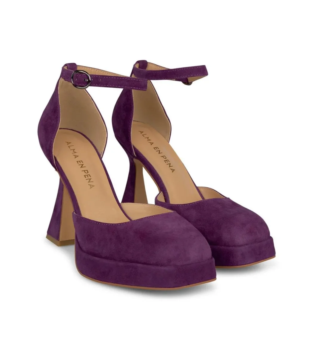 Decolletè Tacco Alto Plateau Camoscio Viola