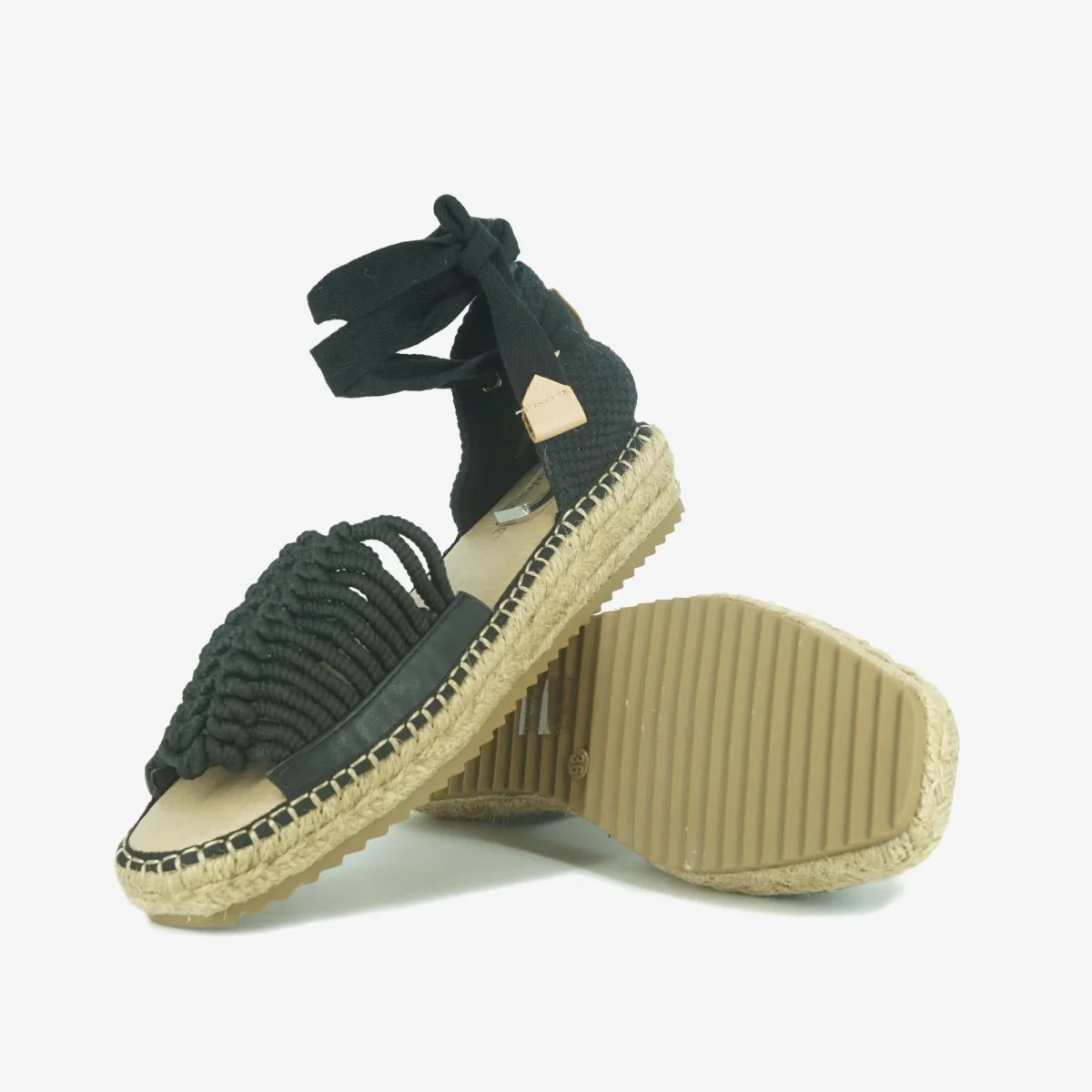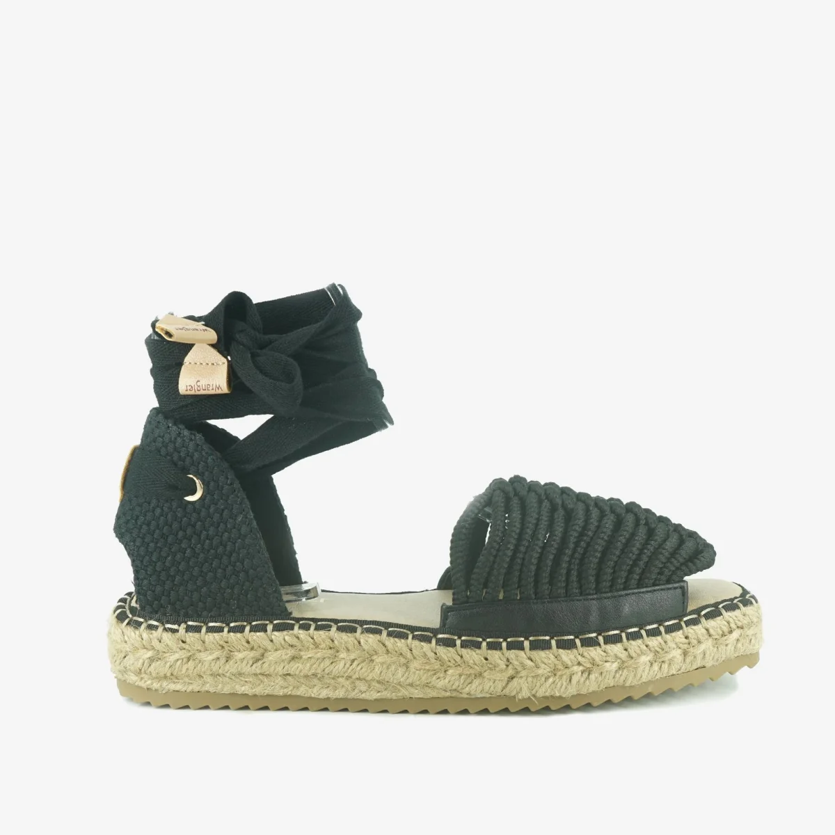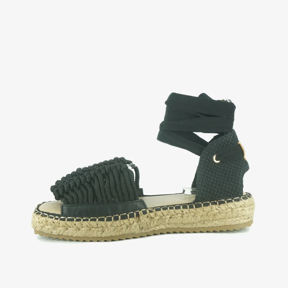 Espadrillas bassa in corda con lacci lunghi alla caviglia.