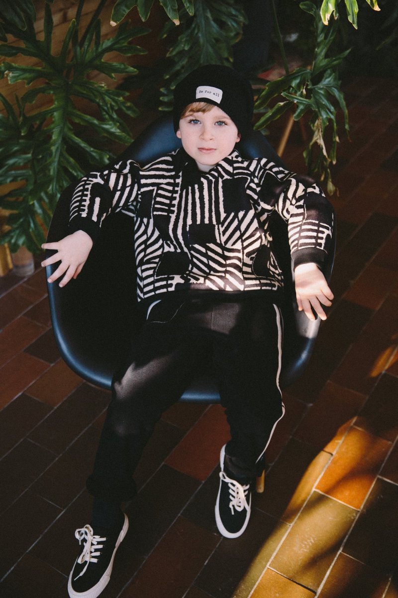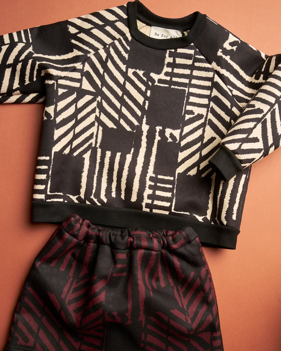 Felpa in bouclè stampato bianco e nero, manica lunga, unisex. Calda ed avvolgente.