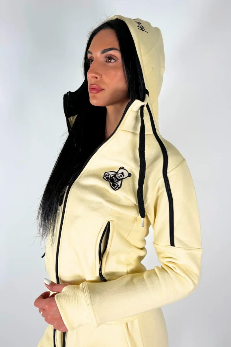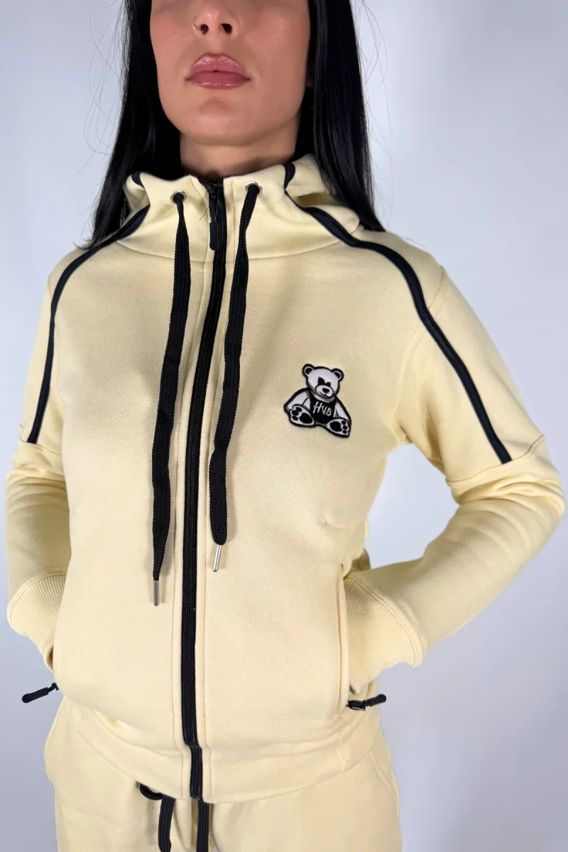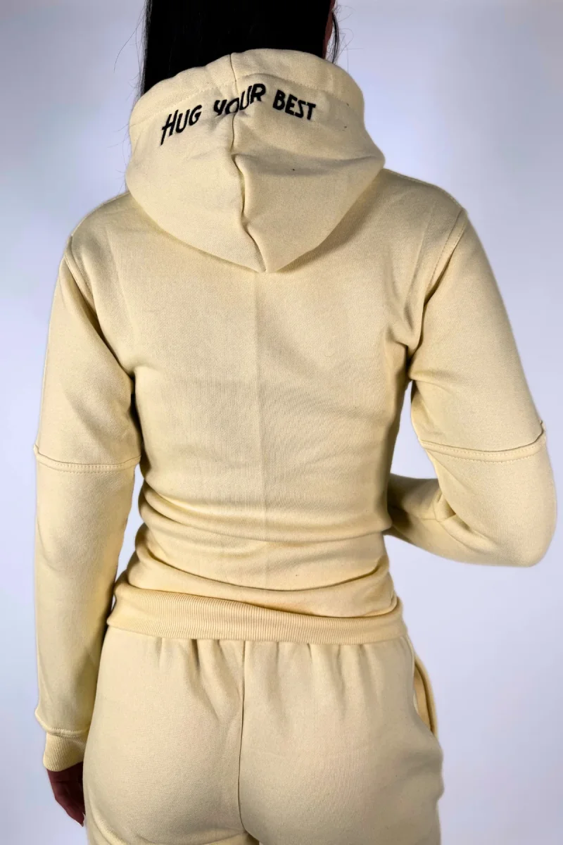 • Logo โ€œorsettoโ€ fronte e logo โ€œHug Your Bestโ€ nel cappuccio ricamati;