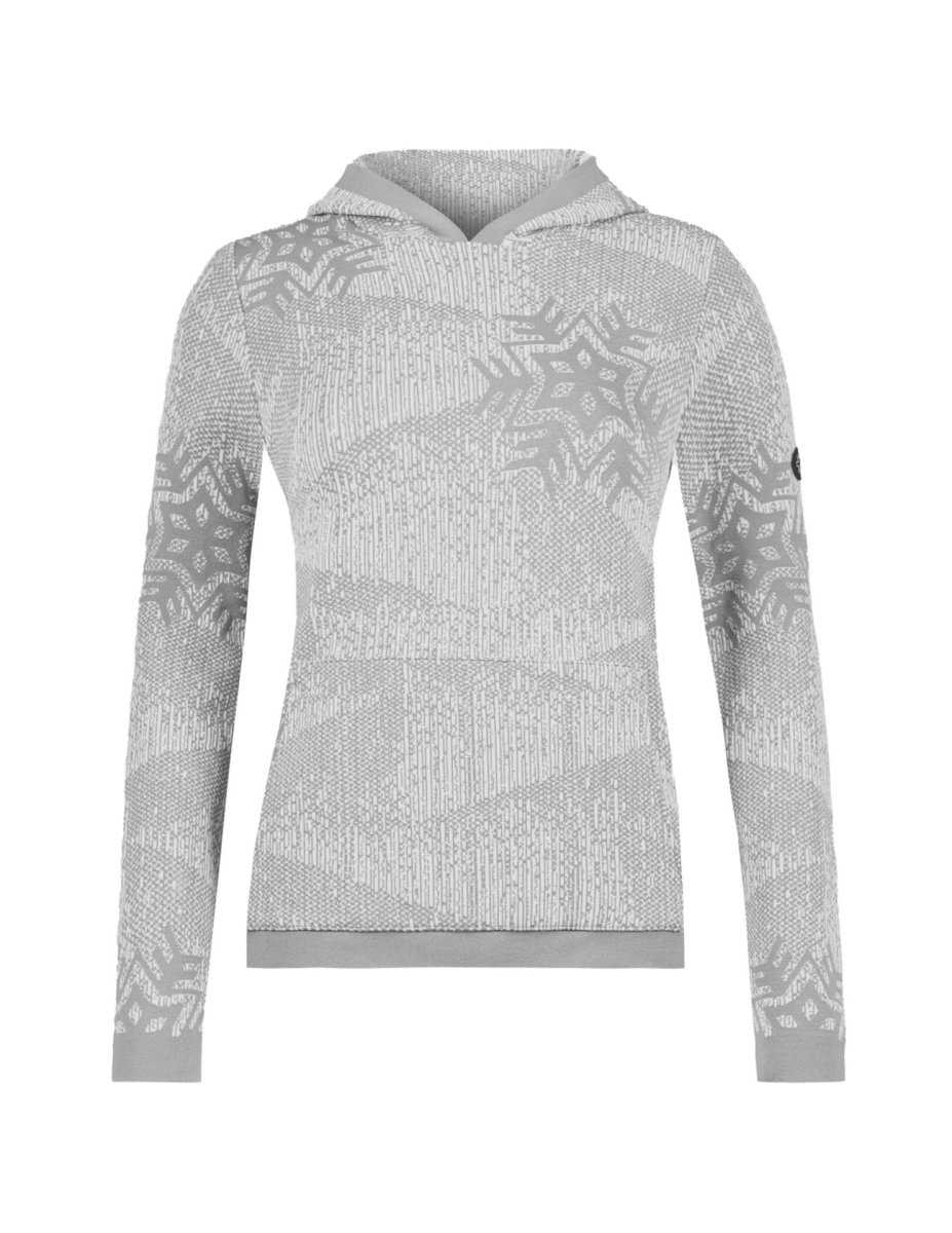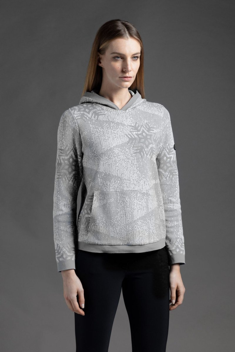 Felpa con cappuccio e tasche realizzata con il tessuto tecnico DHtech 400, garantisce grande traspirabilitร e termoregolazione offrendo allo stesso tempo la massima libertร di movimento. Abbina le inimitabili caratteristiche tecniche del tessuto a un pregiato jacquard all over diventando cosรฌ un capo multifunzionale, perfetto per la montagna e la cittร .