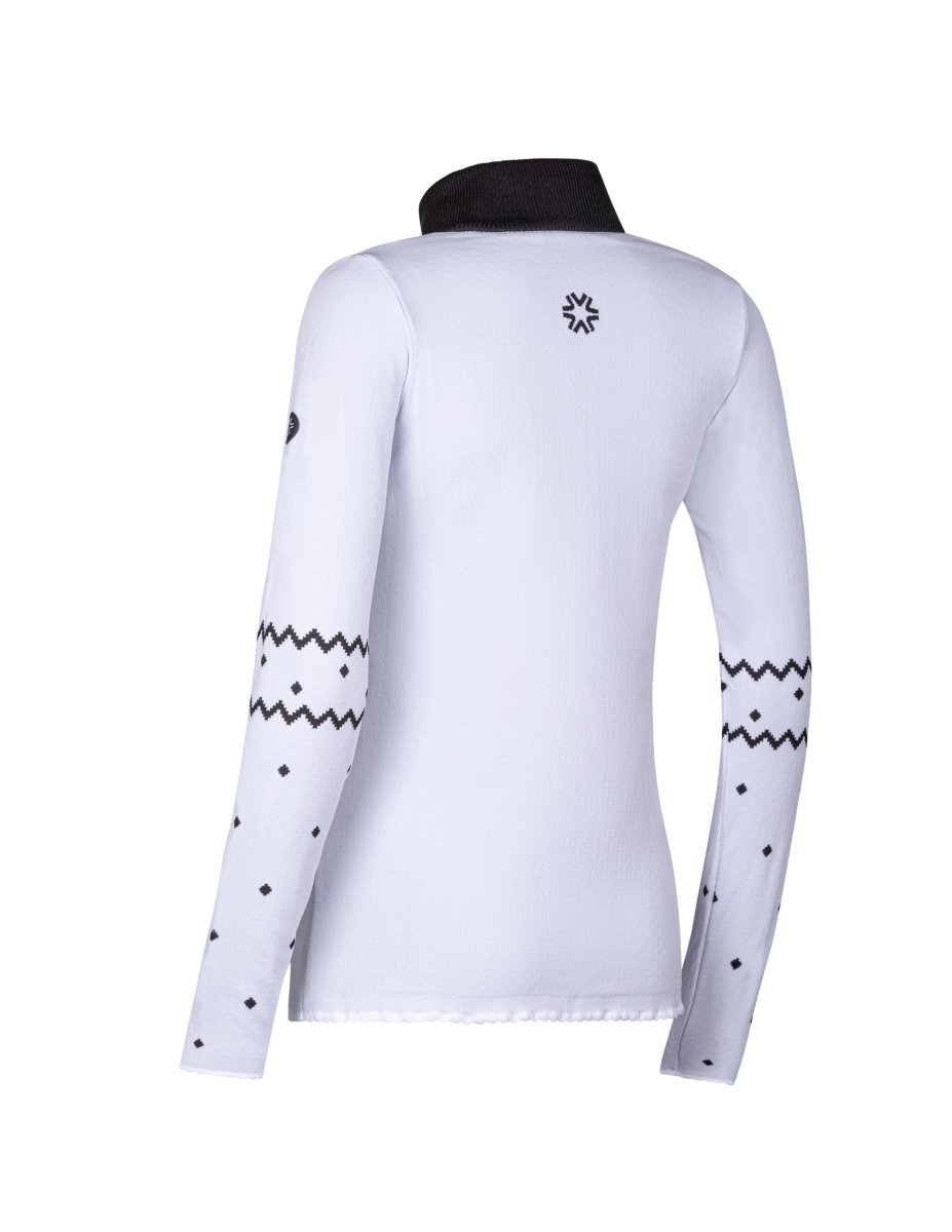 Maglia termoregolante realizzata nel tessuto tecnico DHtech 400 con collo a costine preziose e fondo bordato in pizzo. L’esclusivo jacquard e la zip lunga con tasche rendono questo capo estremamente trendy e funzionale. Il polipropilene, filato con il quale viene realizzata, รจ a basso impatto ambientale e di facile manutenzione, si asciuga molto velocemente e non si stira. Perfetta per chi ama il look tanto quanto la propria libertร di vivere al massimo qualsiasi situazione climatica.