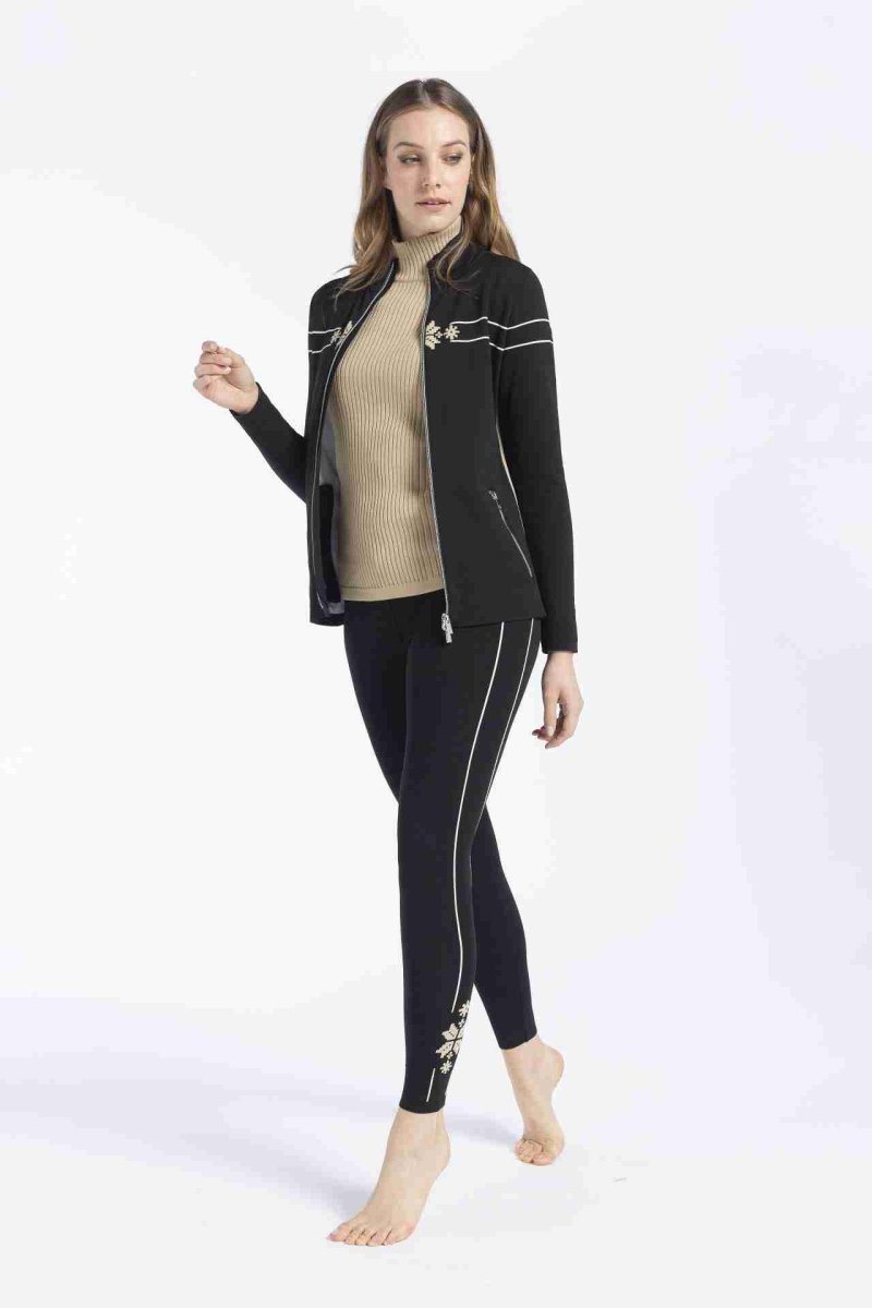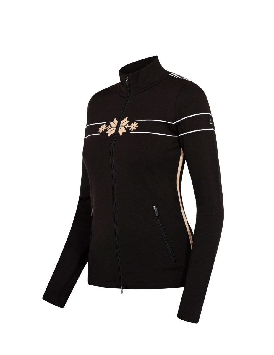 Felpa con zip lunga in DHtech 400, combina le caratteristiche tecniche del tessuto ad uno jacquard femminile diventando un capo altamente versatile.