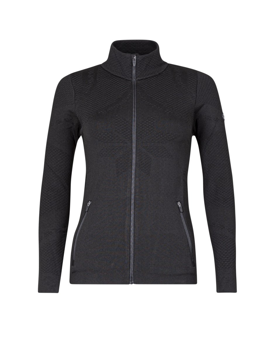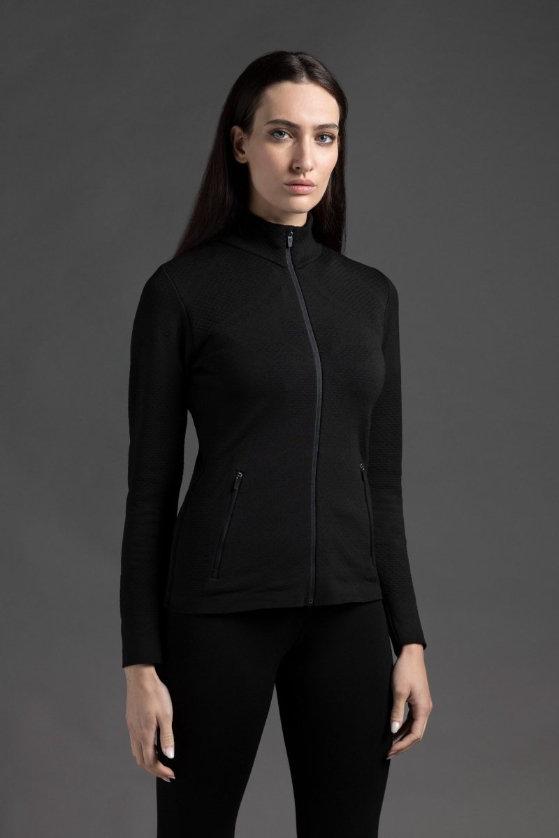 Felpa tecnica con zip lunga e tasche realizzata nel tessuto tecnico DHtech 400 Ovality 3D con jacquard raffinato tono su tono. La nuova esclusiva lavorazione permette una maggiore coibentazione del capo e rende il capo estremamente trendy e sportivo. Confortevole, femminile e versatile.