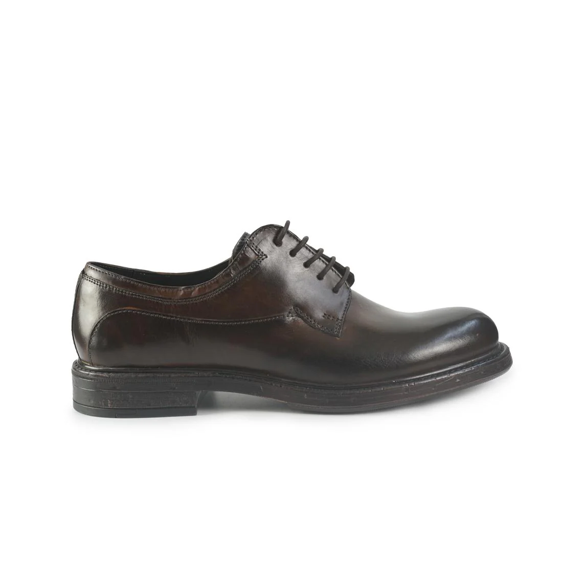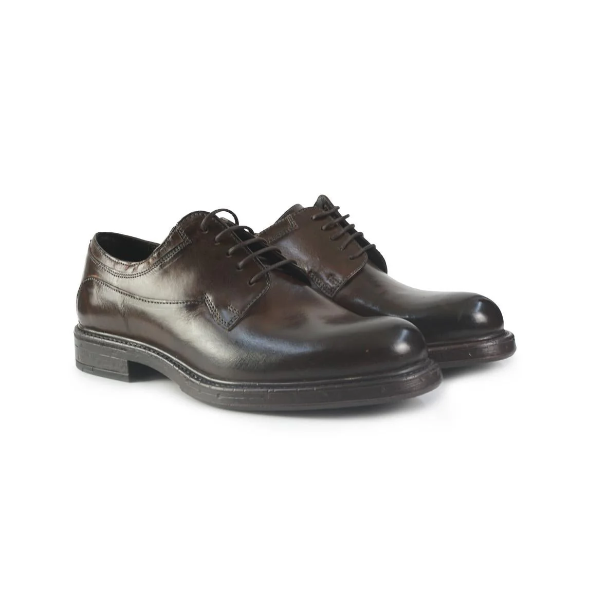 Stringata francesina liscia con allacciatura derby e con la caratteristica del pellame spazzolato e reso non uniforme. Fondo gomma resistente, flessibile e antiscivolo.