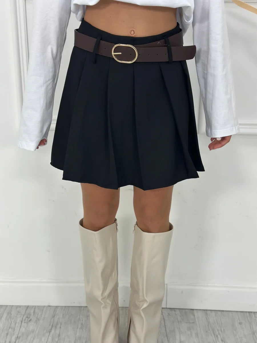 Gonna vita alta con piegoline zip invisibile sul lato e cintura