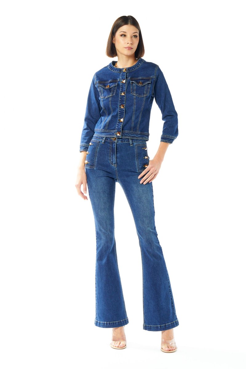 Jeans palazzo studs No Secrets con bottoni oro.