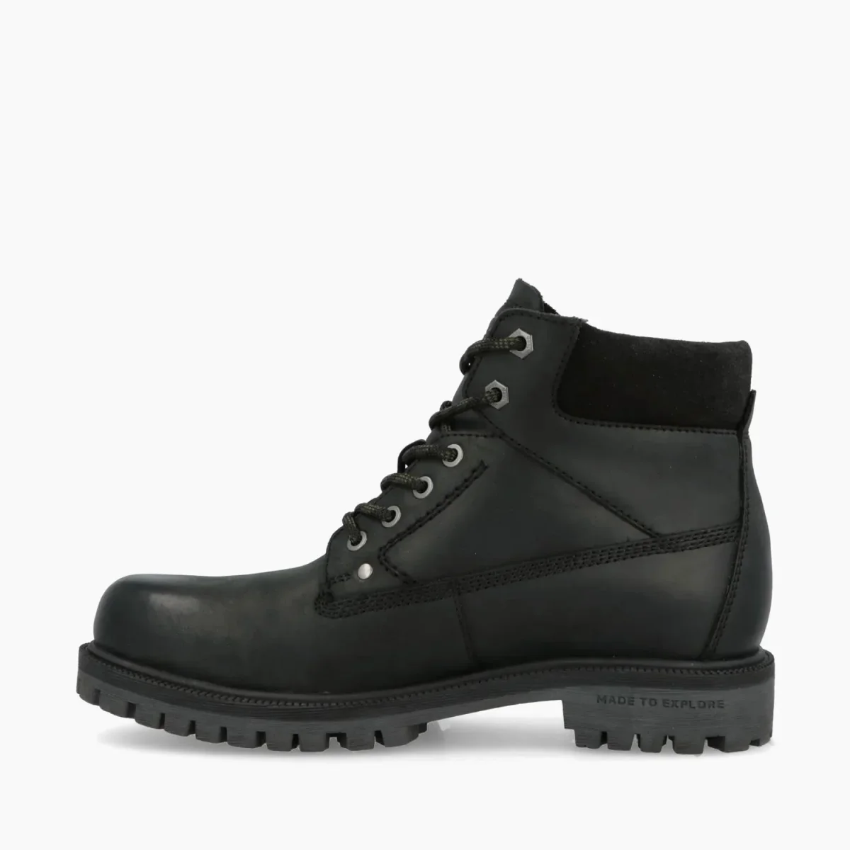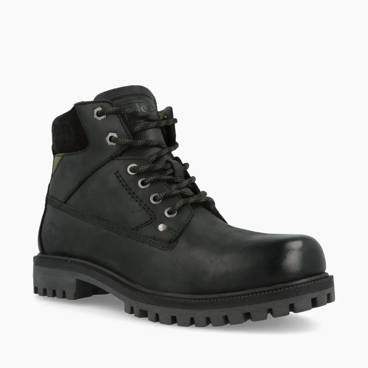 Stivaletto anfibio in pelle con lacci e fondo gomma roccia antiscivolo.