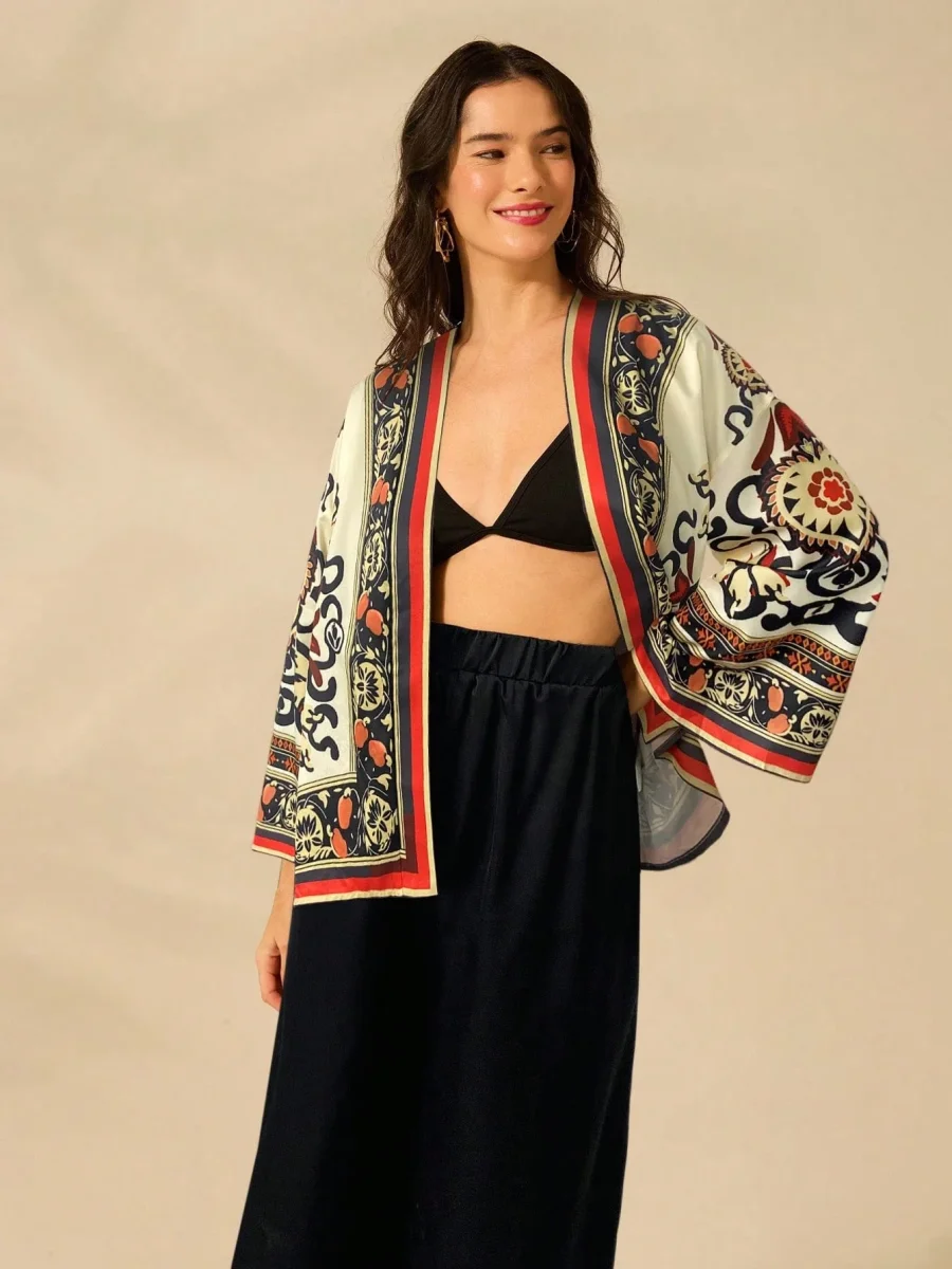 Eleganza casual e una silhouette fluida: il nostro Kimono a maniche lunghe รจ il preferito di tutto l’anno. Realizzato in un tessuto leggero e setoso, รจ un’aggiunta di stile a qualsiasi outfit, sia esso un abito, un costume da bagno o un insieme casual.
