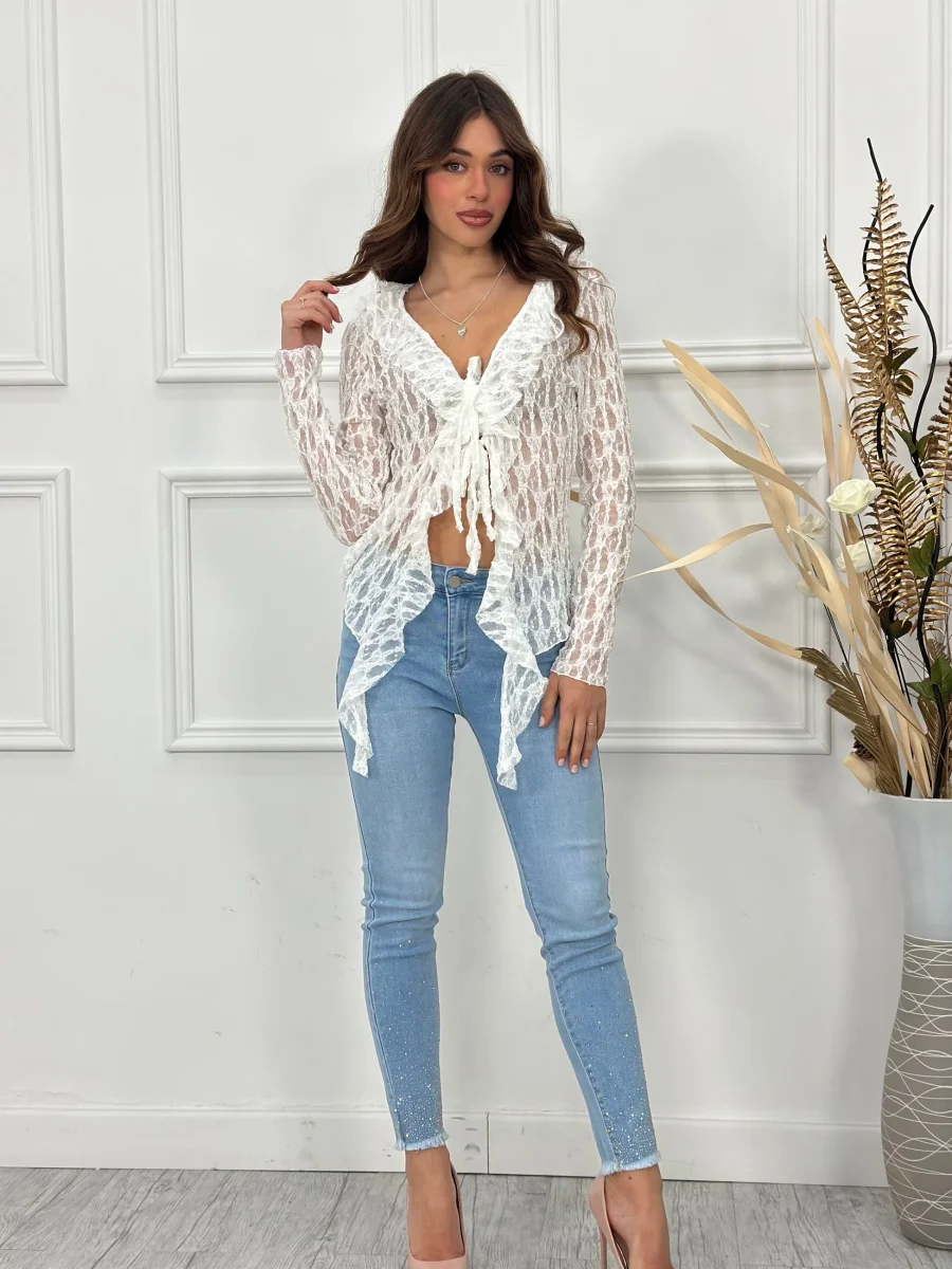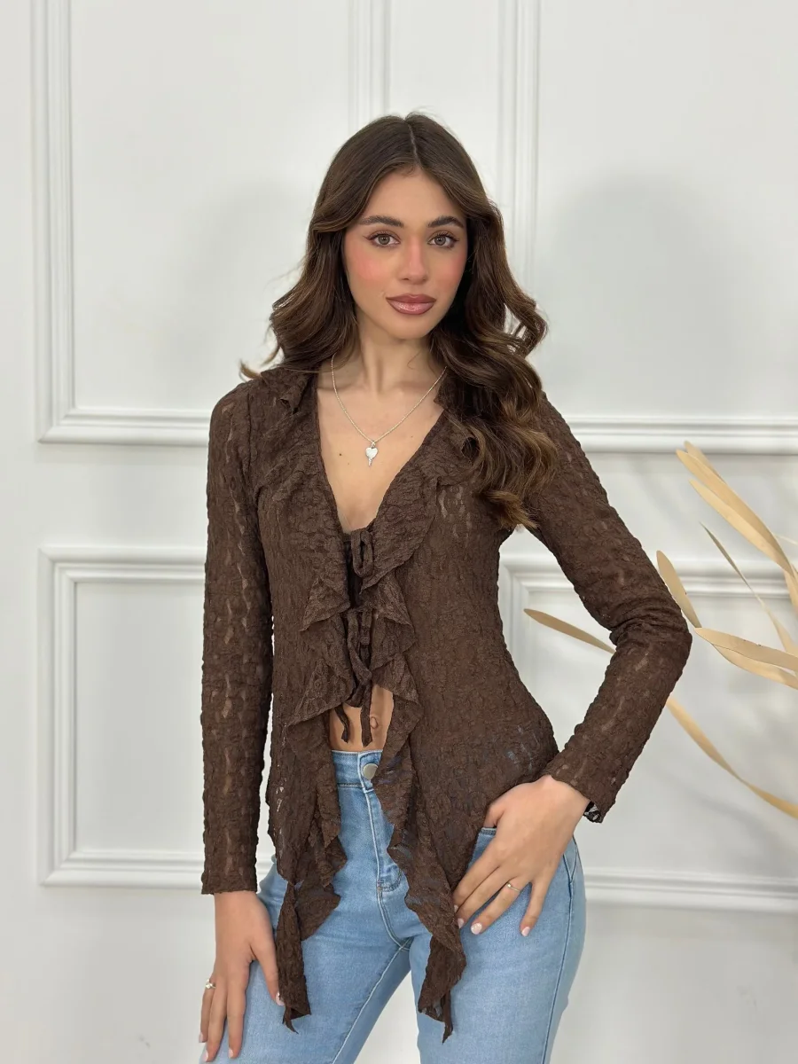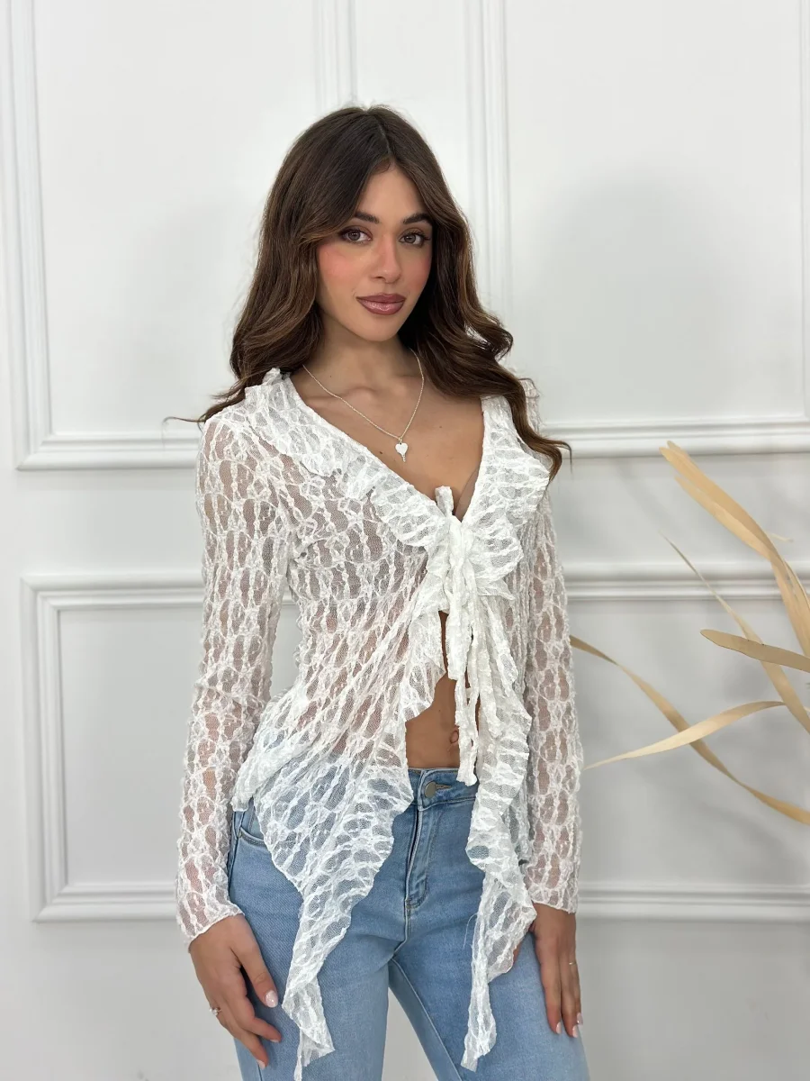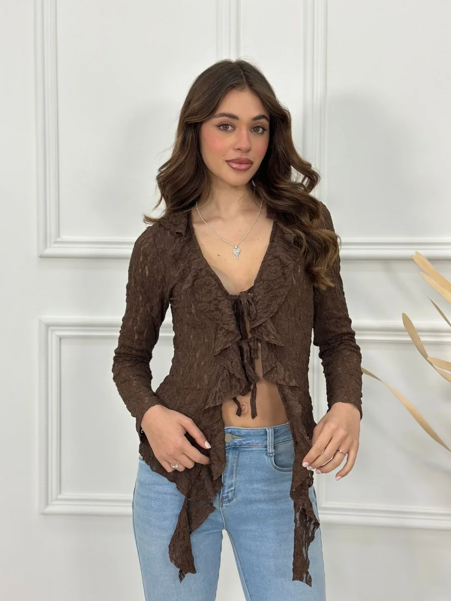 Maglia cardigan con rouches