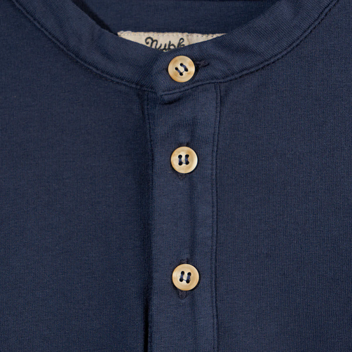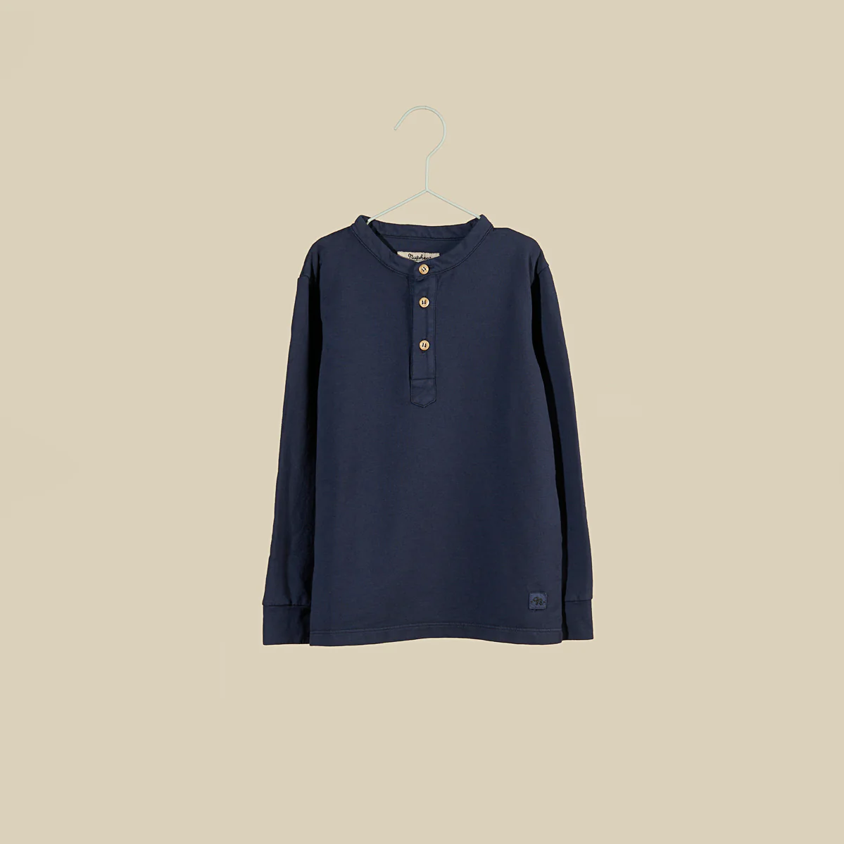 Maglietta serafino manica lunga in cotone blu navy leggermente felpato, tinto capo. Morbida sulla pelle e calda, รจ un capo basic che non puรฒ mancare nell’armadio di tuo figlio!