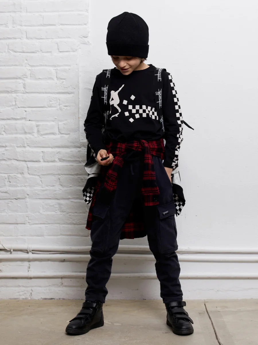 Una maglietta sonora, unica, a maniche lunghe con skater. Questa maglietta ha un tag – removibile – che riproduce il suono la stampa e la grafica, per stimolare la fantasia e divertire i ragazzi che le indossano. Il tag funziona con pile che si possono cambiare e non deve essere messo in lavatrice. 4A-104 6A-116 […]