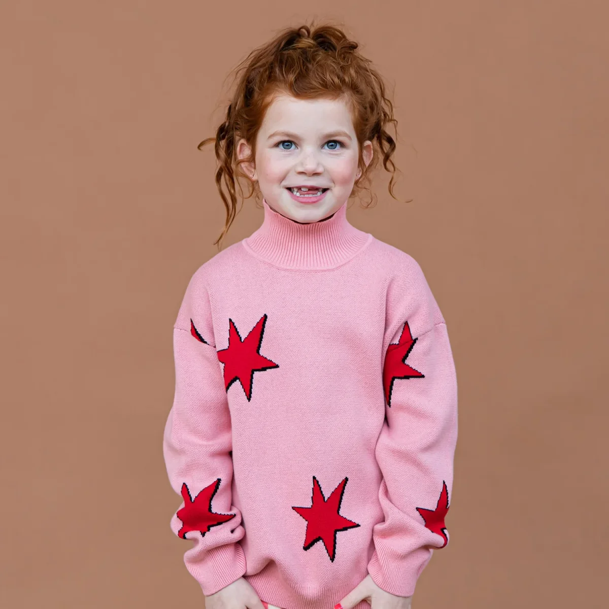 Maglione rosa a collo alto con fantasia Stars! Perfetto per le ragazze che vogliono distinguersi in modo unico e alla moda.