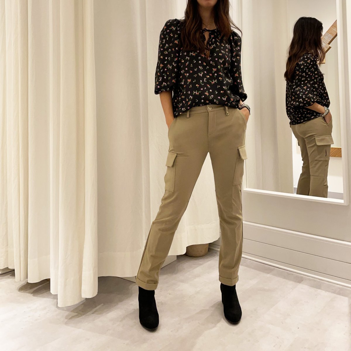 Pantaloni cargo in jersey con tasconi laterali dalla vestibilitร slim. Il modello puรฒ essere abbinato alla sua giacca monopetto in jersey creando un look di tendenza ed elegante.