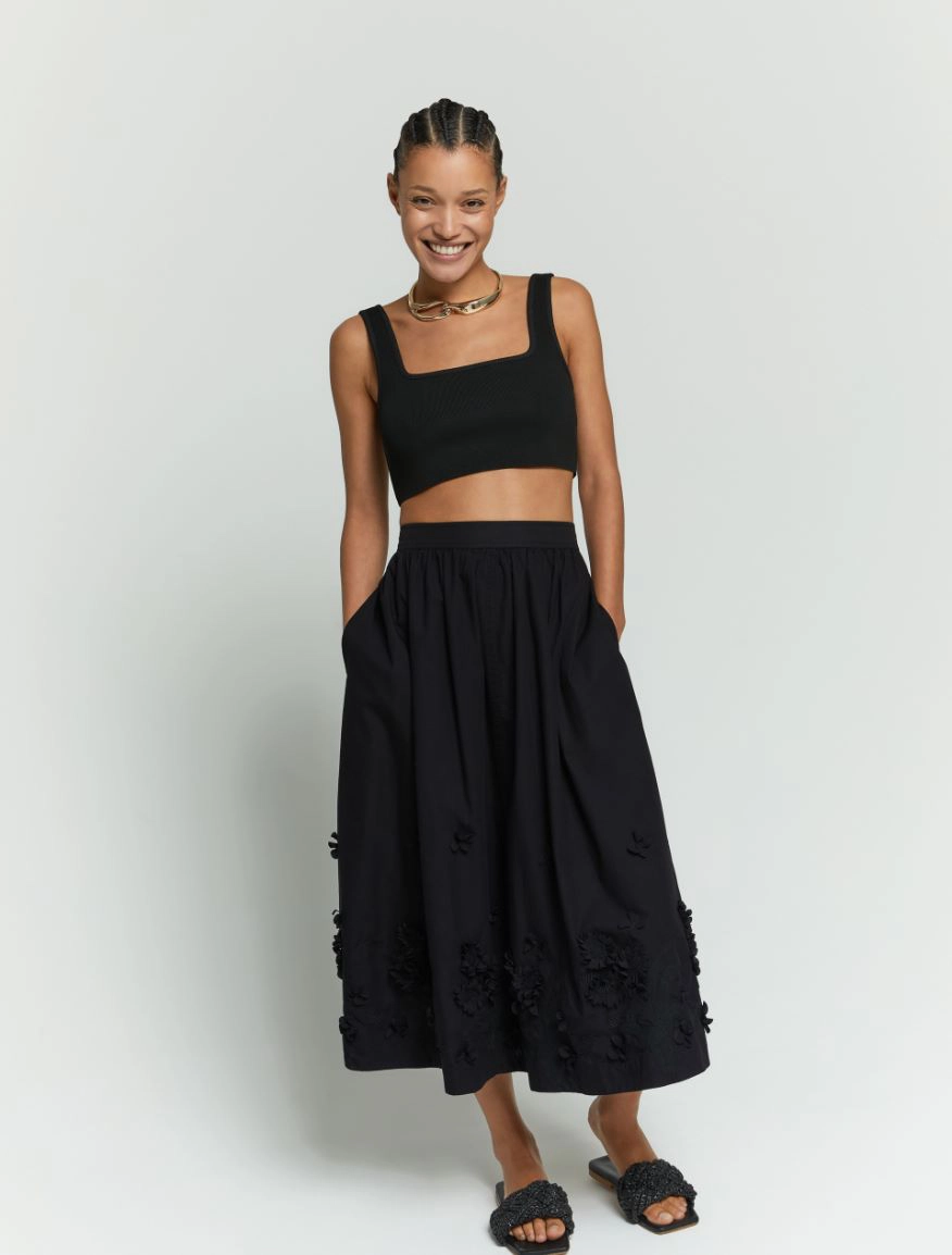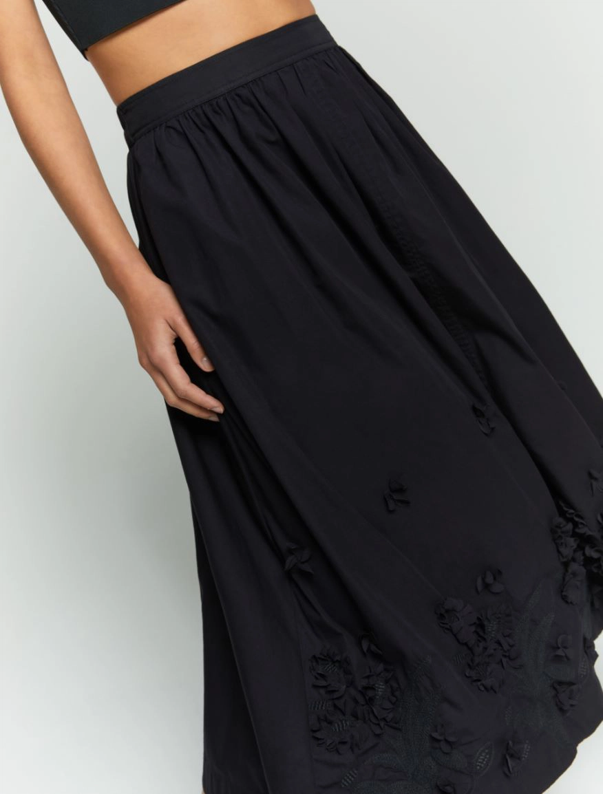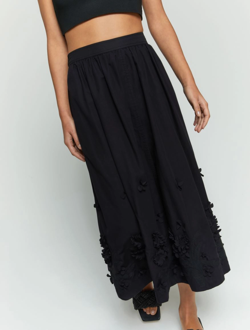 Indossala con un crop top: stile effetto wow. Gonna lunga in cotone ricamato Linea ampia e morbida Chiusura con elastico sul retro