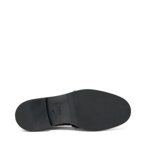 Mocassino in pelle con accessorio fibbia a contrasto. Fondo gomma flessibile e antiscivolo.