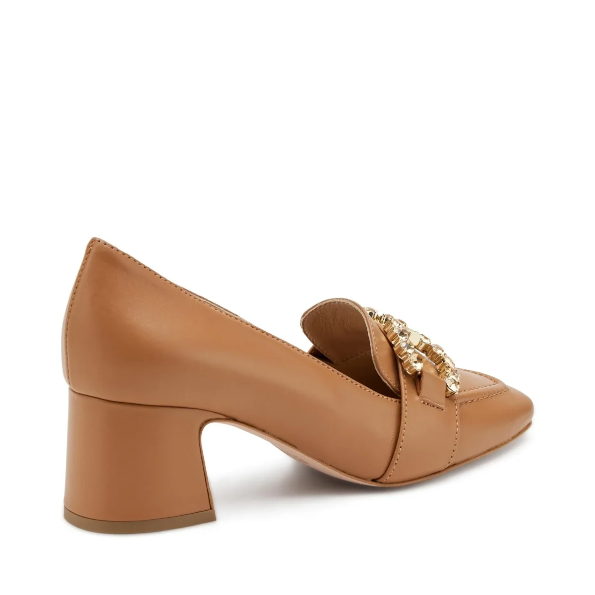 Mocassino con morsetto gioiello e tacco fasciato a coda. Fondo gomma antiscivolo.