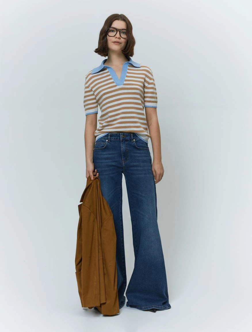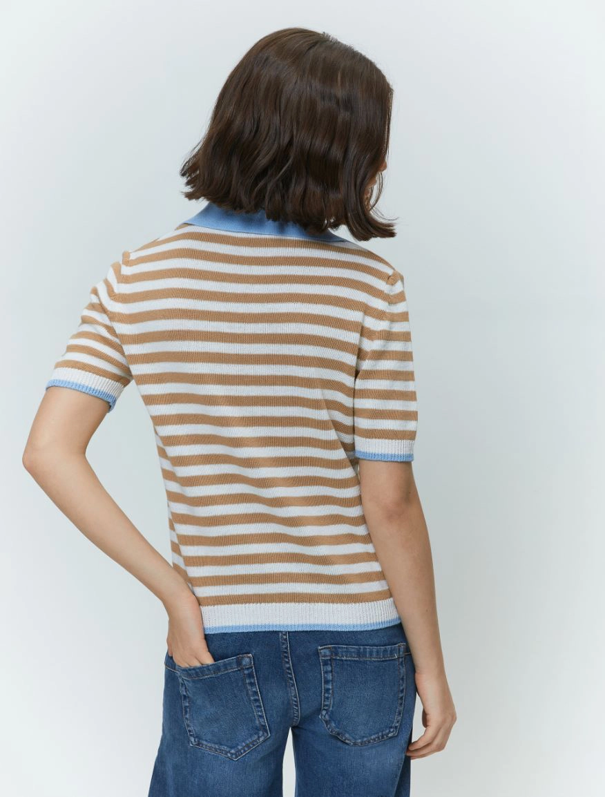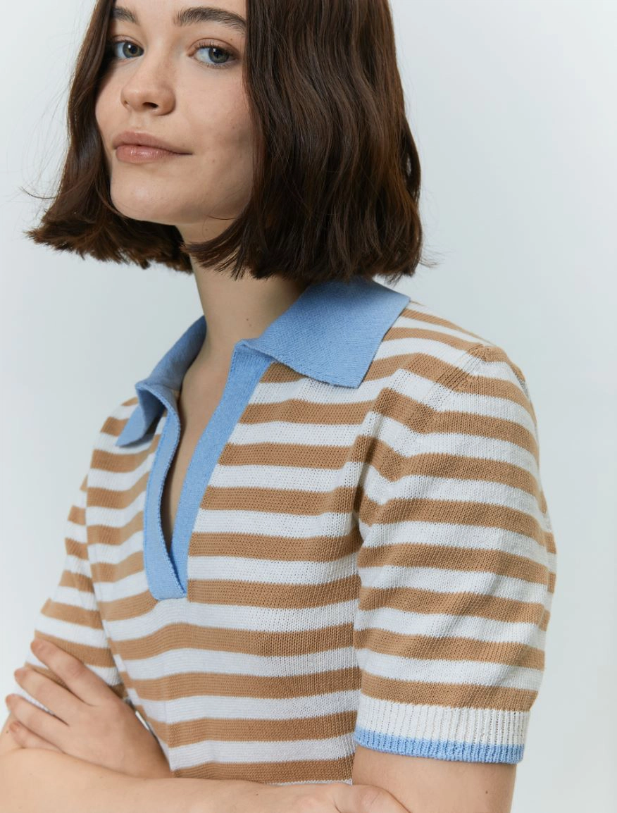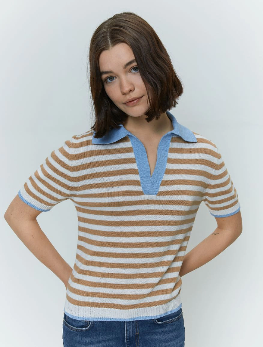 Evergreen nel design, contemporanea nel fit: always cool. Il capo fa parte del progetto “Match pointโ. Polo a righe in maglia misto cotone Linea boxy Colletto con apertura a V, maniche corte Bordi a contrasto Nome prodotto:โ OVIDIO