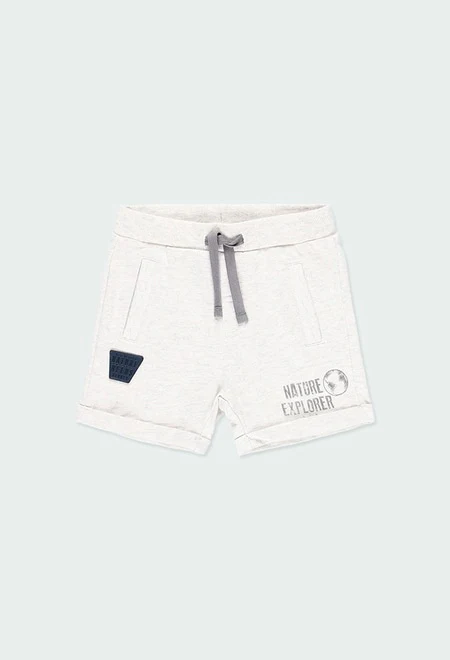 Bermuda a maglia liscia per bambino in cotone biologico color grigio chiaro. La vita a costine e si regolano con un elastico interno e una coulisse nello stesso colore. Hanno come dettaglio un’etichetta decorativa del marchio.