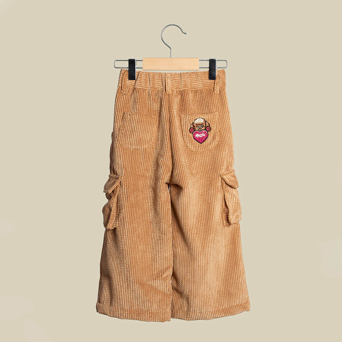 Pantalone cargo velluto a costine cammello, tasconi laterali con barboncino Arthur. Comodo con elastico in vita. Abbinalo alla sua t-shirt per un look troppo carino!