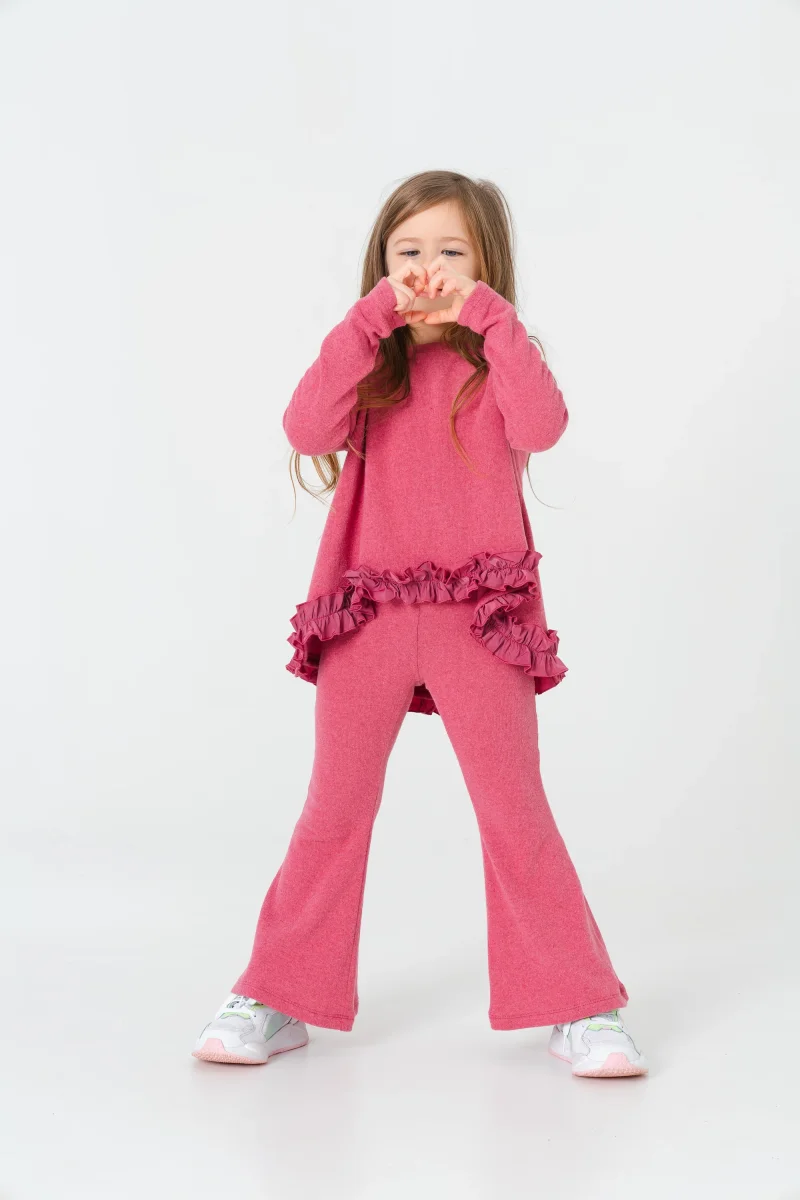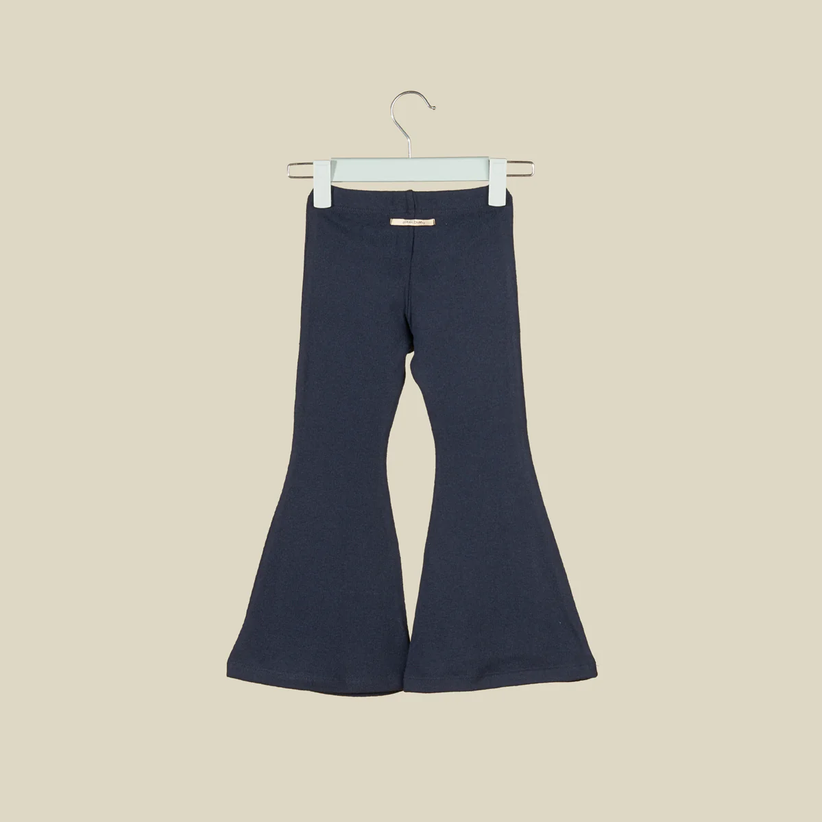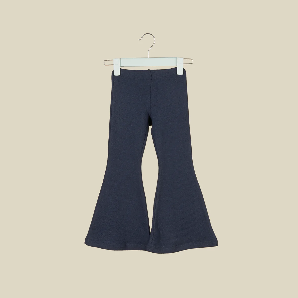 Pantalone scampanato in caldo cotone blu, con pratico elastico in vita. Perfetto per tutti i giorni o per occasioni speciali.