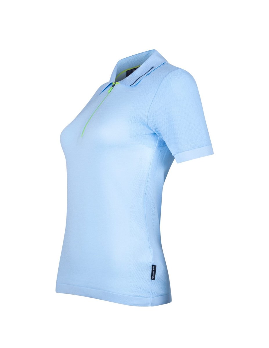 Innovativa polo con zip corta realizzata nel tessuto DHtech Ultra Breath. Capo in cui innovazione e tecnicitร del tessuto si fondono con eleganza e ricerca del dettaglio per creare un prodotto unico dalle molteplici funzionalitร . Leggera, confortevole, anallergica e antibatterica, รจ un capo femminile e multifunzionale.