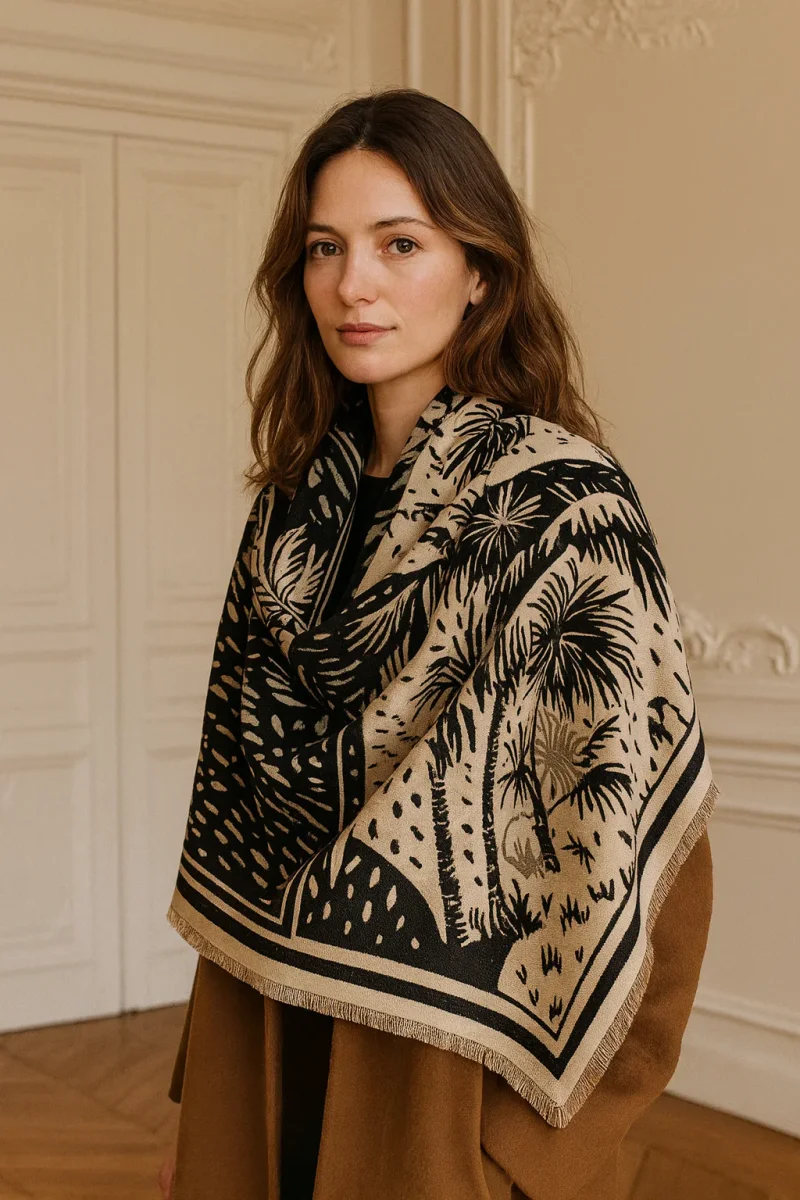 Un accessorio che valorizza i vostri outfit Aggiungete un tocco sofisticato al vostro stile con questa sciarpa a motivi geometrici neri e beige. Elegante e versatile, si abbina bene sia a un cappotto invernale che a un outfit piรน leggero per la mezza stagione. Chic e senza tempo Raffinati motivi geometrici per un look moderno. […]