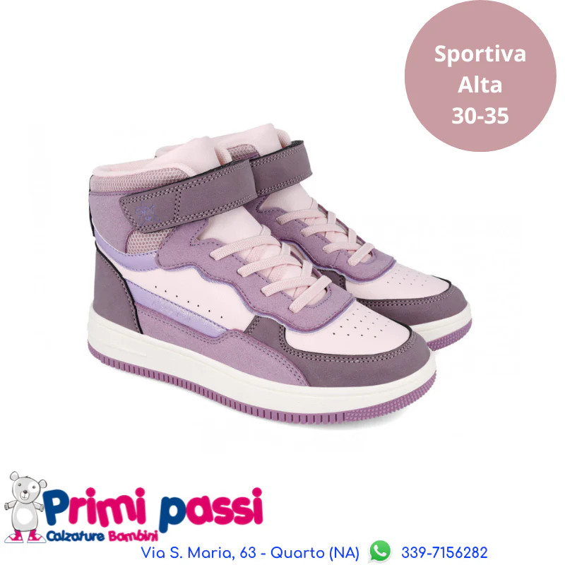 Sneakers Alte da bambina realizzati in pelle e puntale rinforzato. Comfort e qualitร per grandi avventure! Si apre e si chiude facilmente con un cinturino in velcro e una vestibilitร perfetta si ottiene con le cinghie elastiche che forniscono supporto.