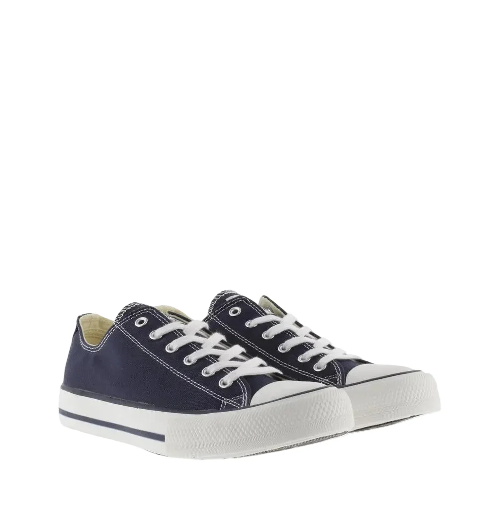 Sneaker in tela stringate leggere e senza tempo. Chiusura con lacci bianchi e rinforzo sulla punta. Soletta ad alta densitร per maggiore comfort.