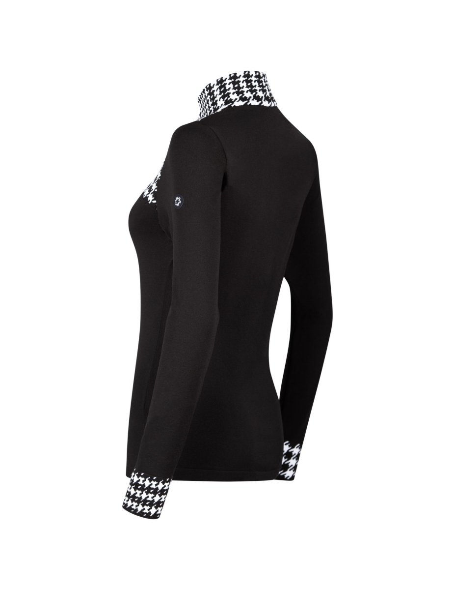 Sottotuta termico con zip corta in DHtech 240, impreziosito da un raffinato jacquard a quadri sul davanti. Traspirante, termoregolante, anallergico e antibatterico.