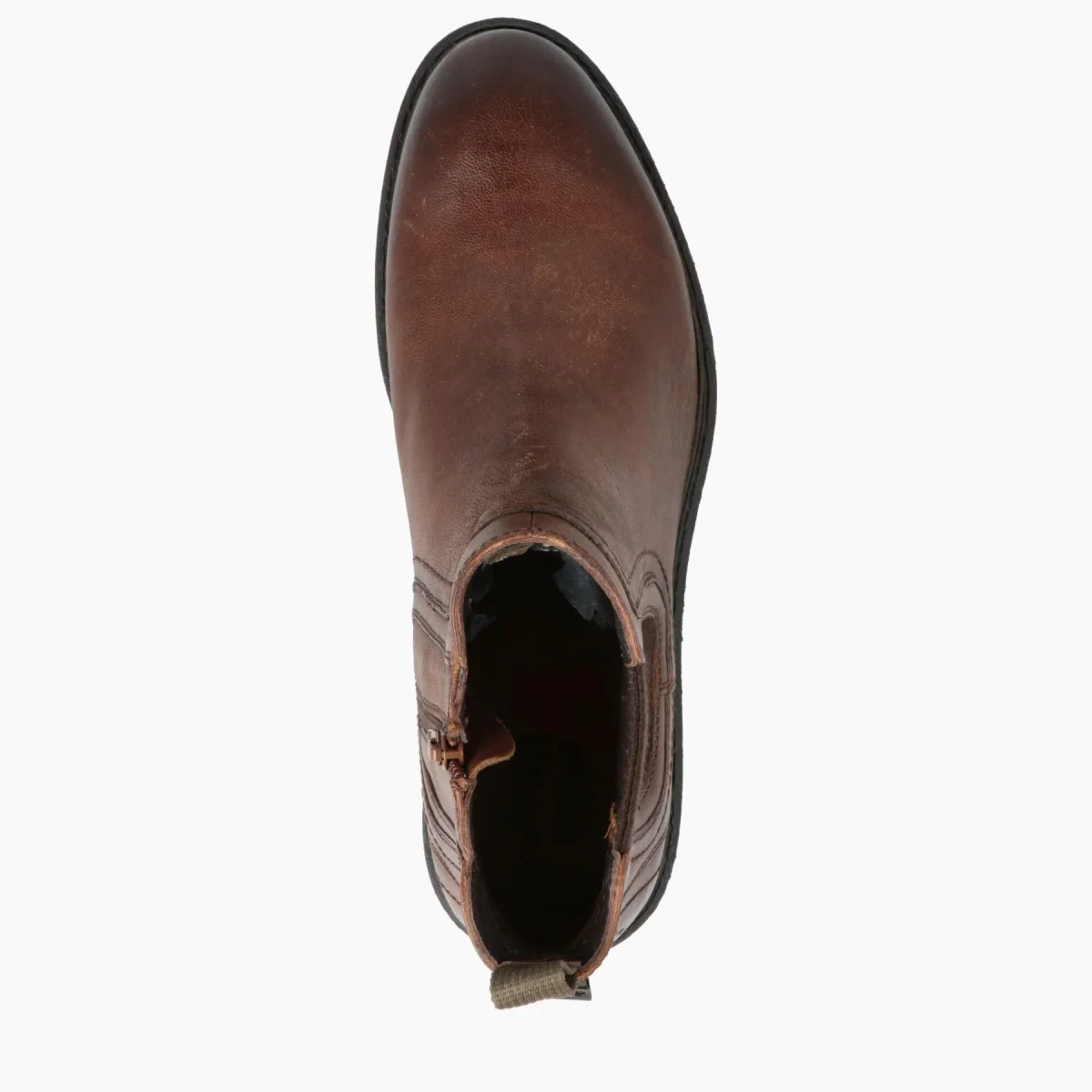 Stivaletto in pelle con elastico esterno in tinta e zip interna. Fondo gomma antiscivolo.