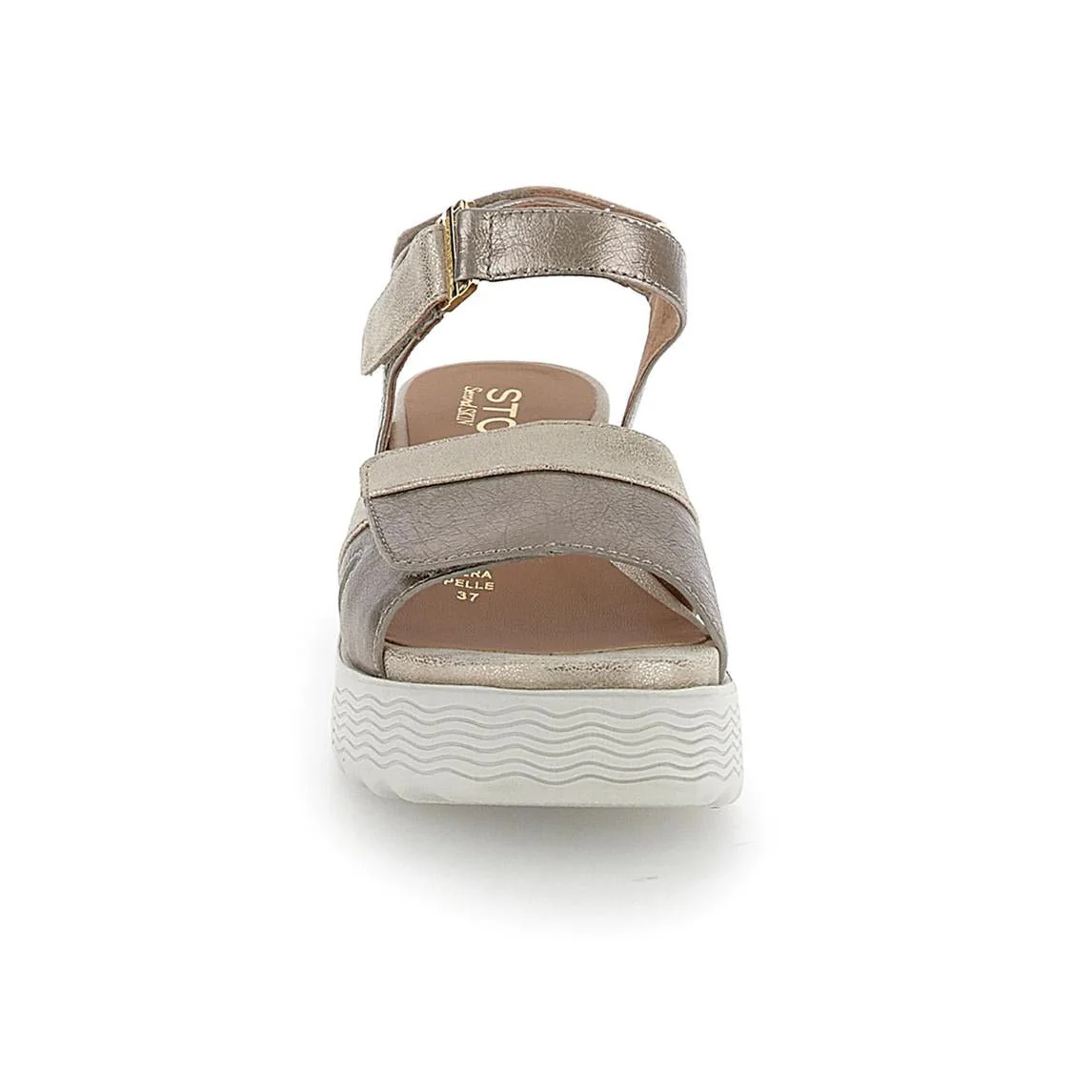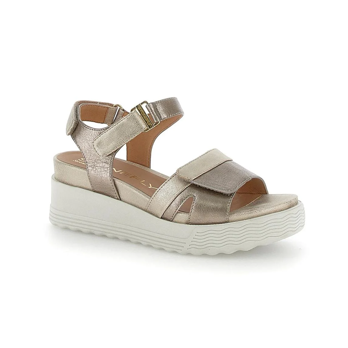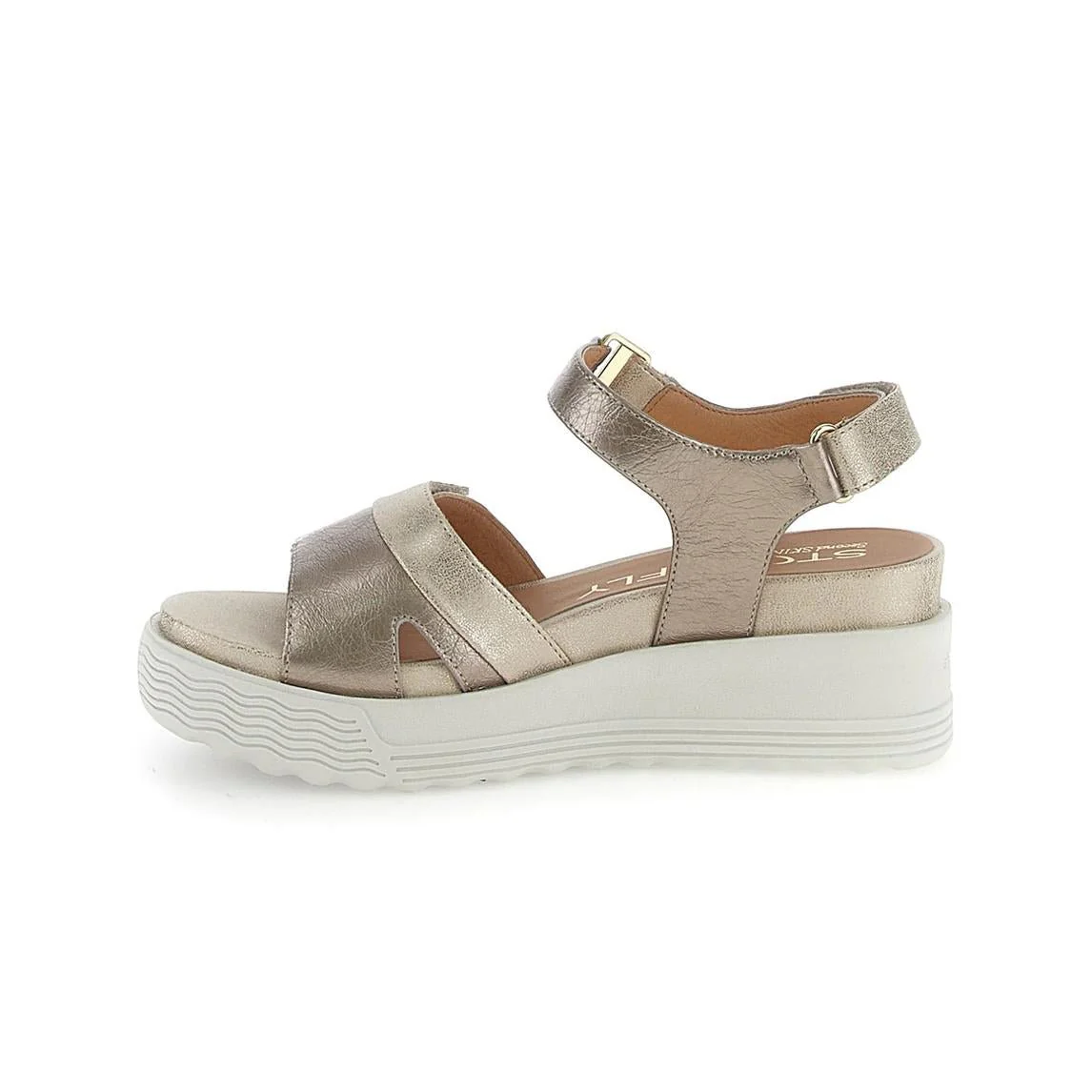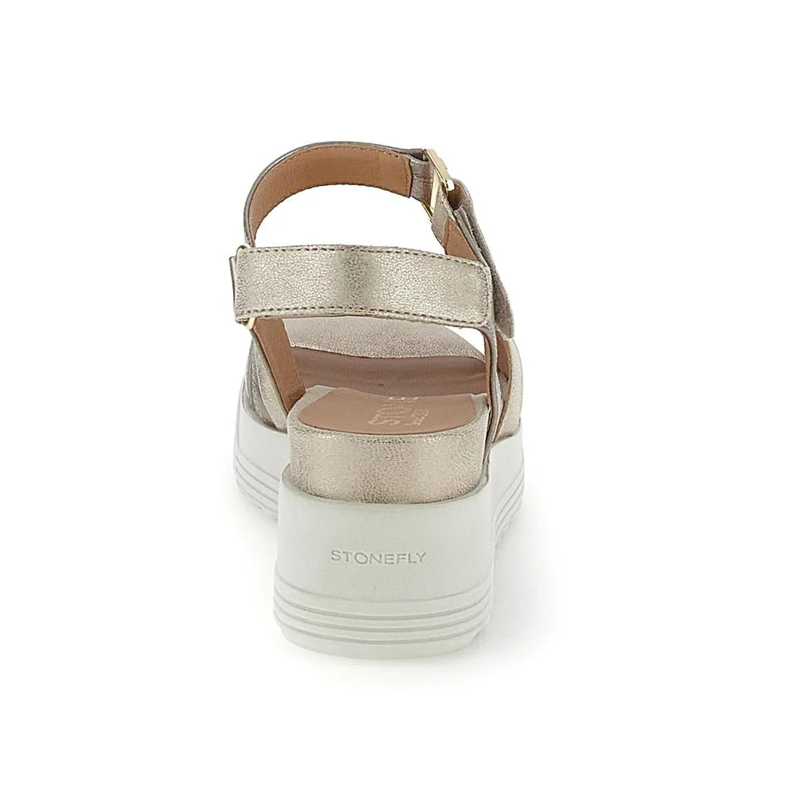 Stonefly Sandali Donna con Zeppa e Chiusura Velcro Platino